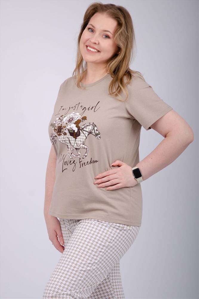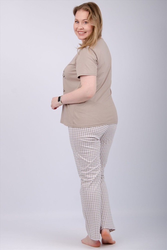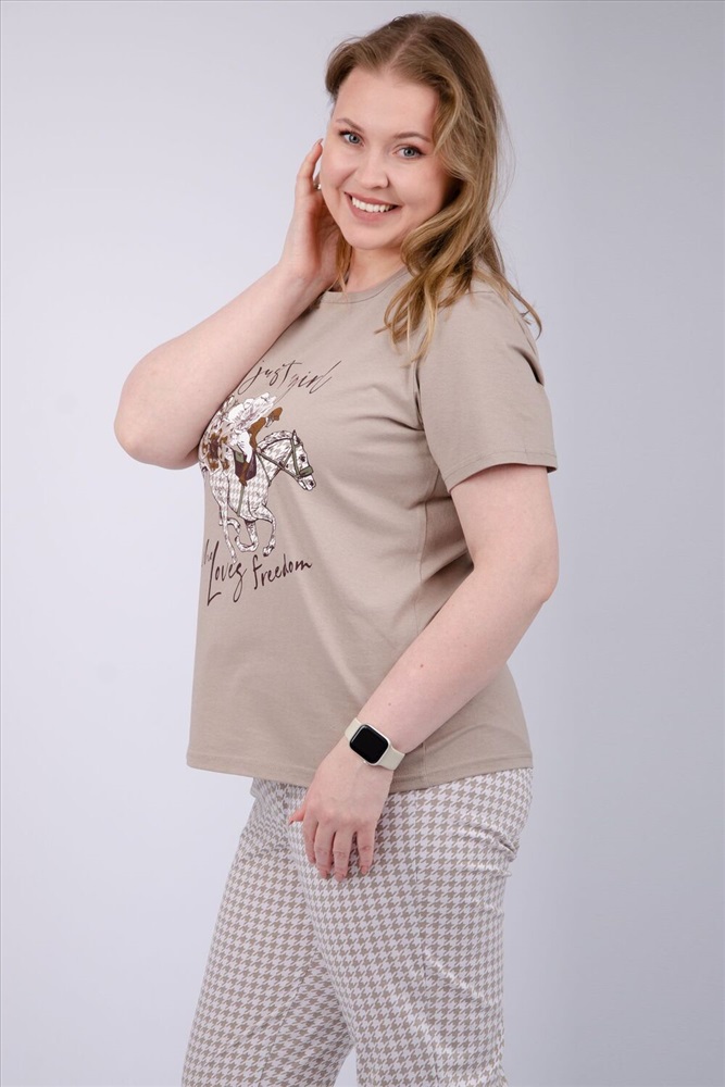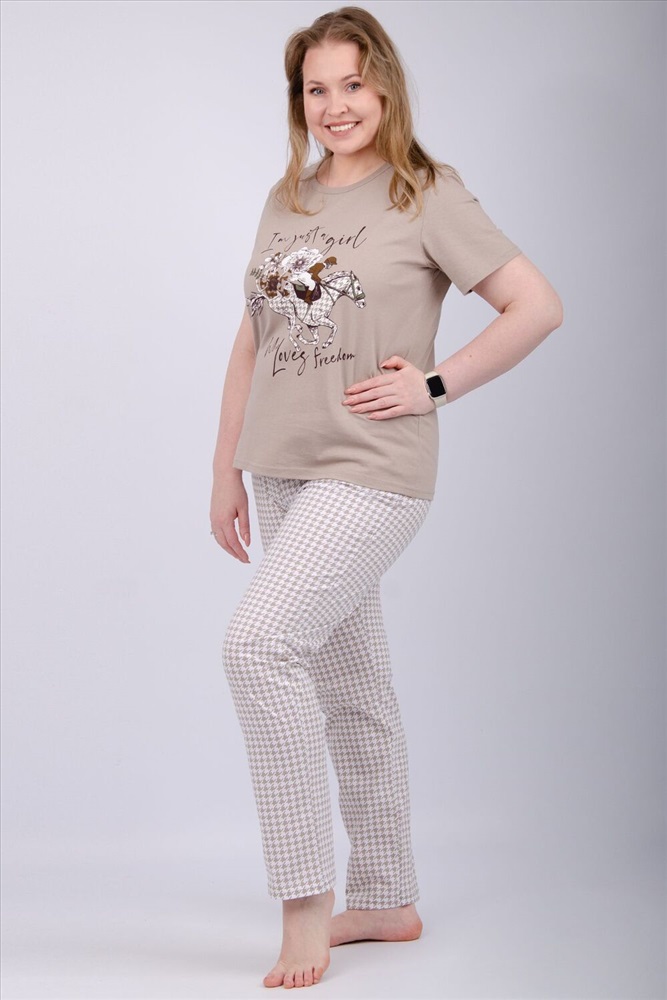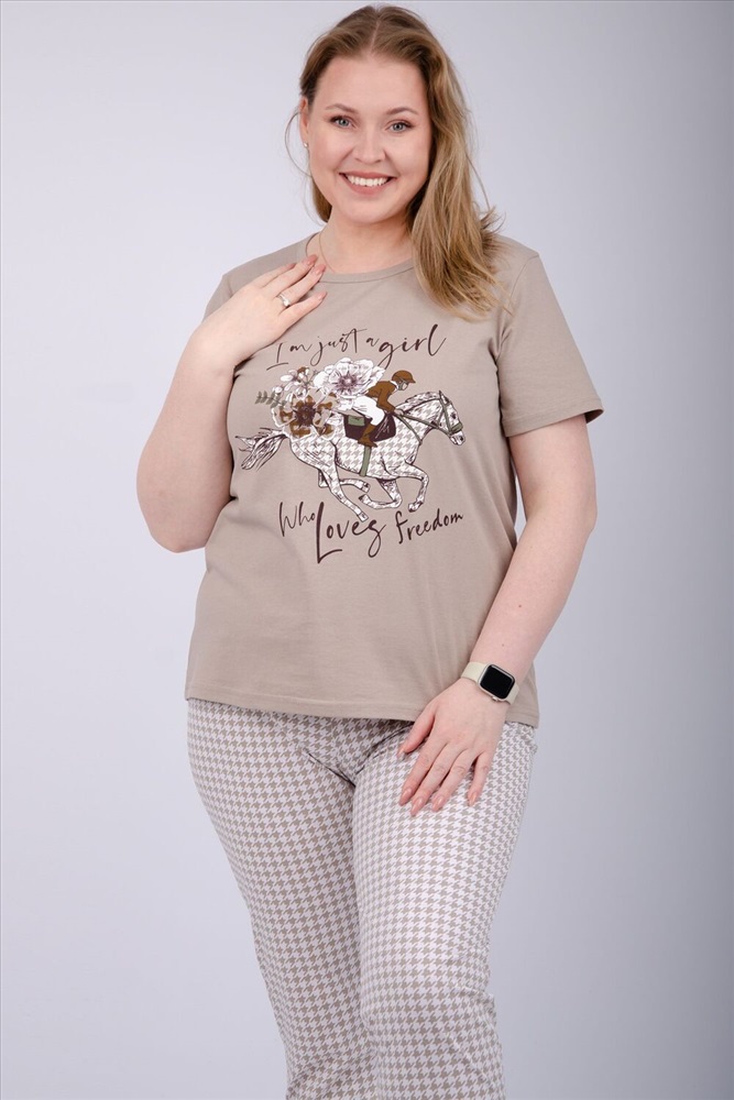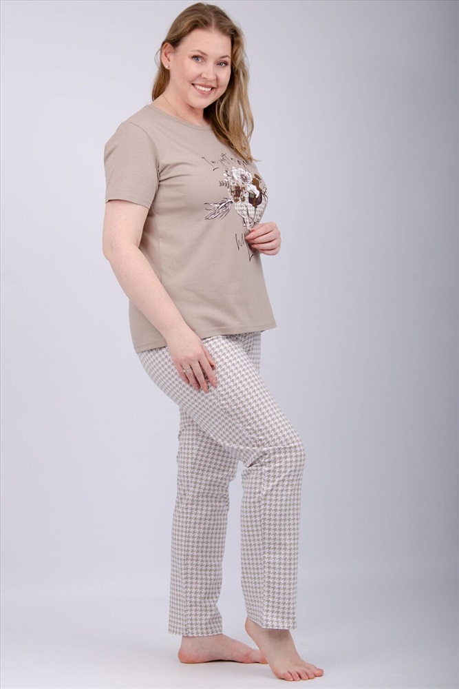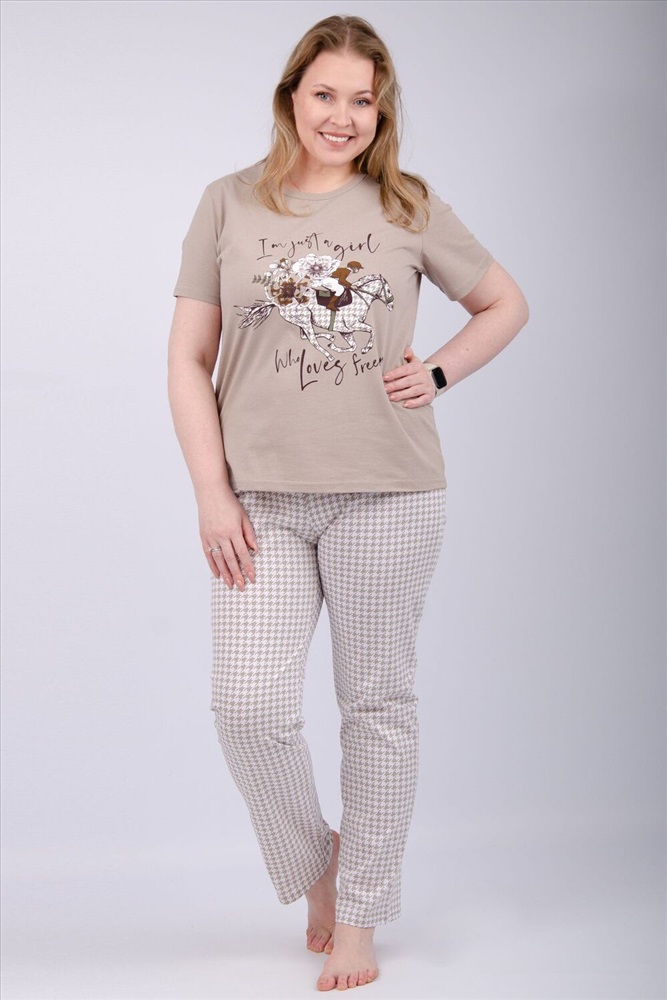 Состав: 100% хлопок Модель: Пижама Вивианна 2 Тип товара: пижама с брюками Материал: кулирка | кулирка Бренд: Malina Карман: без карманов Назначение: для дома НДС: 5% Особенности: на резинке Отделка: с печатью Посадка: высокая посадка Рисунок: гусиная лапка | спорт | цветы Рукав: короткий рукав Сезонность: лето | осень | весна | зима Силуэт: свободный Стиль: домашний Воротник: без воротника Застежка: без застежки Наша пижама выполнена из мягкого и приятного на ощупь трикотажа, который обеспечивает максимальный комфорт во время сна и отдыха. Материал прекрасно дышит, не вызывает аллергии и раздражения кожи. Благодаря своей структуре он сохраняет тепло в холодное время года, и создает ощущение легкости и свежести в летнее время. Пижама представлена в нескольких размерах, включая большие, чтобы каждая женщина могла найти подходящий вариант, который подходит именно вам. Таблица размеров и весафутболка