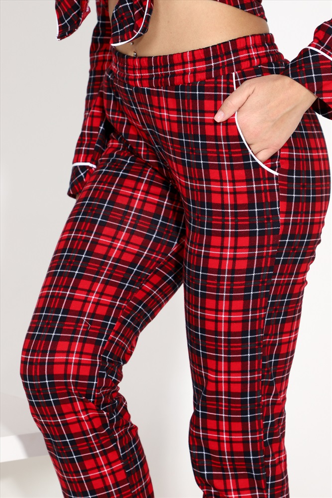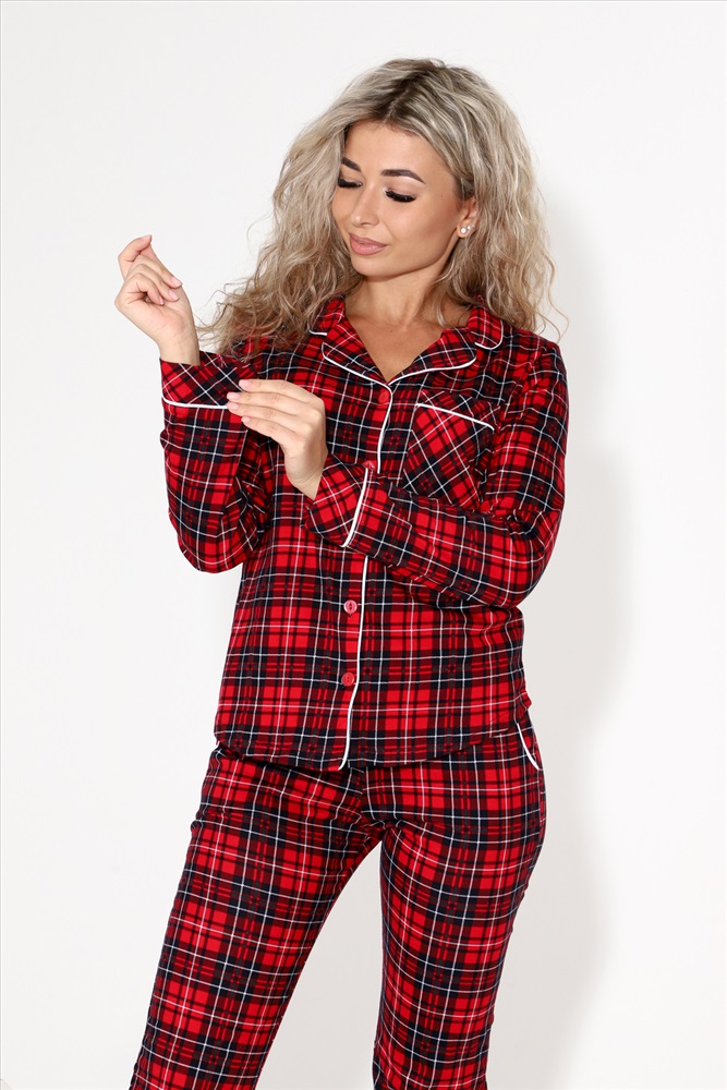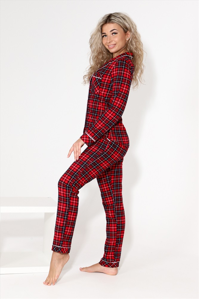 Состав: 100% хлопок Модель: Пижама женская 46538 TM Modalina Тип товара: пижама с брюками Материал: кулирка | кулирка Бренд: Modalina Карман: боковые Назначение: для дома НДС: 5% Особенности: на резинке Отделка: с карманами | с манжетами Посадка: высокая посадка Рисунок: клетка Рукав: длинный рукав Силуэт: прямой Стиль: домашний Воротник: отложной воротник Застежка: пуговицы Классическая пижама, красивая, мягкая и уютная хлопковая будет всегда поднимать настроение! Стильный и комфортный домашний костюм прямого кроя, не сковывает движения, идеально подойдет как для дома так и для сна. Хлопковая трикотажная ткань премиального качества мягкая, легкая, эластичная, создает максимальное ощущение комфорта. Пижама имеет классический крой, состоит из рубашки на пуговицах и брюк. Пижама выигрышно подчеркнет вашу фигуру и не будет сковывать движений, а V-образный вырез рубашки аккуратно подчеркнет зону декольте. Модные расцветки никого не оставят равнодушным, прекрасный подарок женщинам и девушкам. Размер соответствует таблице производителя. Таблица размеров и весарубашка