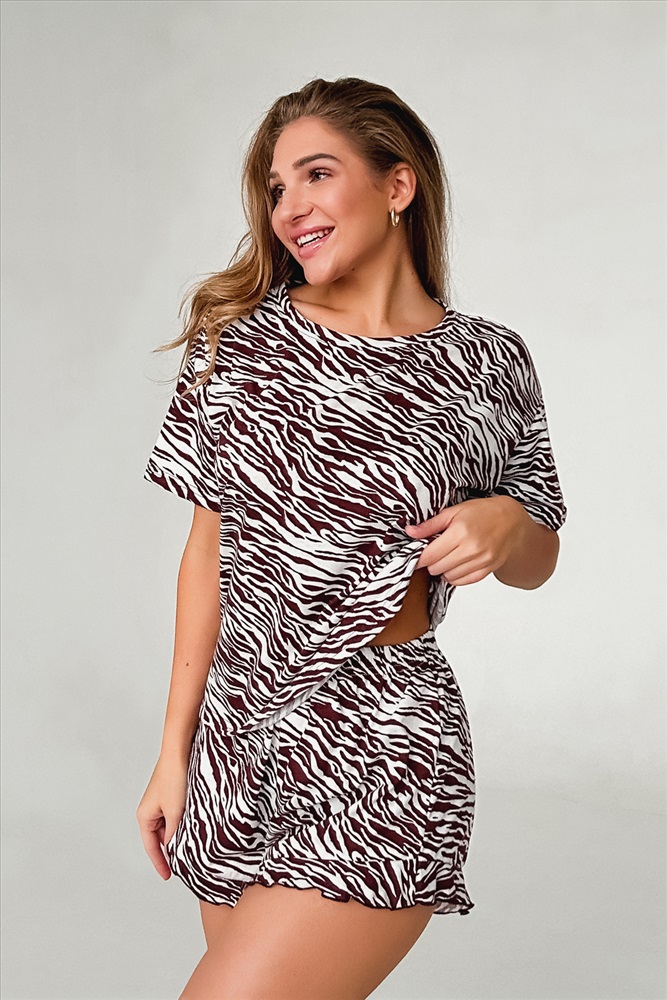 Состав: 100% хлопок Модель: Пижама женская домашняя Зебра коричневый Тип товара: пижама с шортами Материал: кулирка | кулирка Бренд: Iv-trik-stail Карман: без карманов Назначение: для дома НДС: 5% Особенности: на резинке Отделка: с волнистым краем Посадка: средняя посадка Рисунок: анималистичный Рукав: короткий рукав Сезонность: лето | осень | весна | зима Силуэт: свободный Стиль: домашний | молодежный Воротник: без воротника Застежка: без застежки В нашем магазине представлена великолепная женская пижама с шортами, идеально подходящая для дома, отдыха и даже для беременных. Эти стильные домашние костюмы созданы из 100% хлопка, что гарантирует вам комфорт и приятные ощущения на протяжении всей ночи. Пижамы доступны в размерах с 42 по 56, что позволяет каждой женщине найти подходящий вариант. Модель включает в себя удлинённую футболку с коротким рукавом и круглым вырезом горловины, а также шорты с высокой посадкой и поясом на резинке, что обеспечивает отличную посадку и удобство. Нежная рюша с окантовкой придаёт образу романтичность и игривость, делая ваш домашний образ стильным и уютным. Этот домашний костюм подходит для женщин всех возрастов, включая беременных, подростков и девушек. Эта пижама станет отличным выбором для женщин, ожидающих пополнение в семье, благодаря свободному крою и натуральному составу, который заботится о коже. Забудьте о дискомфорте и позвольте себе наслаждаться спокойными ночами и уютными вечерами в домашней обстановке. Набор двойка отлично подойдет в качестве подарка маме, сестре, бабушке на Новый год, Рождество или День Рождения. Превратите каждую минуту отдыха в праздник с нашими пижамами! Таблица размеров и веса