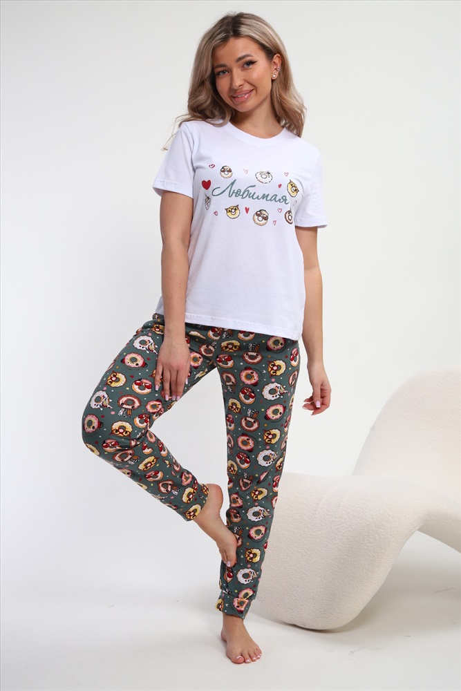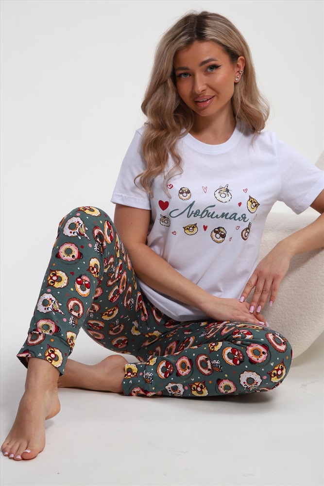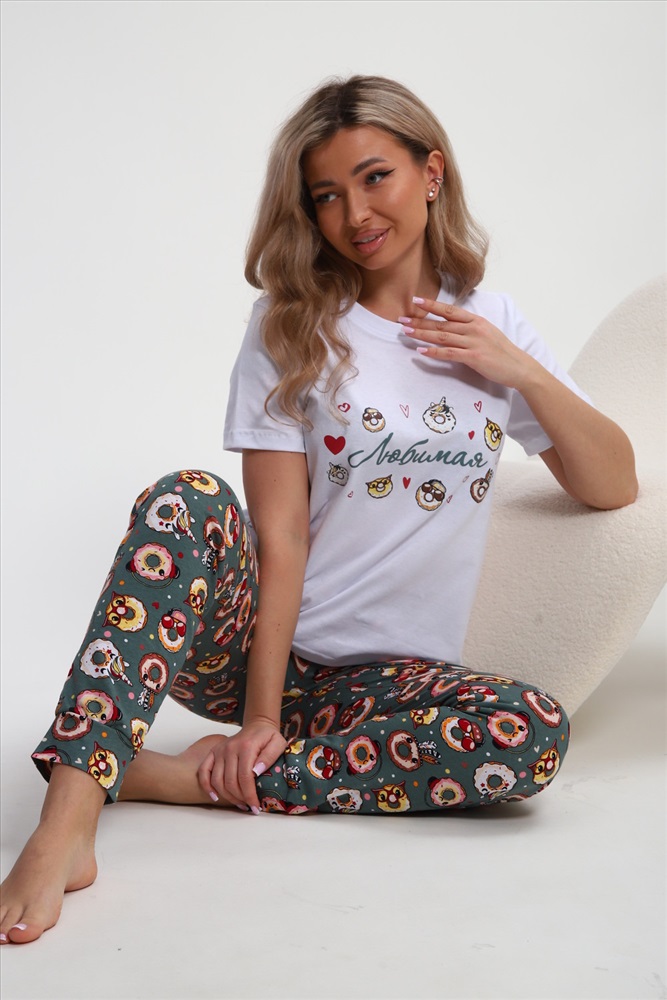 Состав: хлопок 100% Модель: Пижама женская Любимая Пончики Тип товара: пижама с брюками Материал: кулирка | кулирка Бренд: OMG Карман: боковые | прорезные Назначение: для дома НДС: Без НДС Особенности: на резинке Отделка: с карманами | с манжетами Посадка: средняя посадка Рисунок: надпись | разное Рукав: короткий рукав Сезонность: лето | осень | весна | зима Силуэт: свободный Скидка: любая | от 10% и больше Стиль: домашний Воротник: без воротника Застежка: без застежки Мы рады представить вам милую и уютную натуральную хлопковую одежду для сна и отдыха от бренда JEXY, которая станет неотъемлемой частью твоего домашнего комфорта в День всех влюбленных, самый романтичный день года День святого Валентина! Комплект состоит из белой футболки с забавным принтом сладостей, единорога, лошадки с надписью Любимая и зеленых штанов цвета хаки с прикольным принтом. Этот легкий костюм из мягкого хлопка подарит незабываемое ощущение нежности и уюта в холодные зимние дни, позволяя чувствовать себя комфортно и стильно. При разработке этого комплекта мы позаботились о широком размерном ряде, включая большие размеры, чтобы каждые женщина могли порадовать себя или любимых. Благодаря мягкой резинке он подойдет даже беременным. Мы понимаем, что выбор одежды для дома важен не только с точки зрения стиля, но и удобства, особенно когда речь идет о праздниках, полных любви и романтики. Подготовьтесь к празднованию Дня всех влюбленных и 8 марта с нашей пижамой, созданной для создания романтической атмосферы. Домашний костюм идеально подойдет для уютных домашних вечеров, пижамных вечеринок, фотосессий и праздников в кругу близких и дорогих людей. Двойка с брюками обеспечивают свободу движений и подходит для долгих зимних вечеров, когда можно устроить романтический вечер с любимым. Повседневный стиль одежды на каждый день становится все популярнее среди современных девушек благодаря своей универсальности. Мягкость материала поможет расслабиться после долгого рабочего дня и насладиться временем, проведенным с любимыми, без чувства скованности. Это идеальное решение для тех, кто ценит практичность и уют в одежде для дома. Этот трикотажный комплект с прикольным смешным принтом рисунком станет отличным подарком для себя и своих дорогих людей (дочки, мамы, подруги, бабушке, сестре) на день рождения и любой праздник. Погрузитесь в атмосферу праздника и нежности с нашей новогодней пижамой от JEXY! Вся информация предоставлена продавцом Таблица размеров и веса