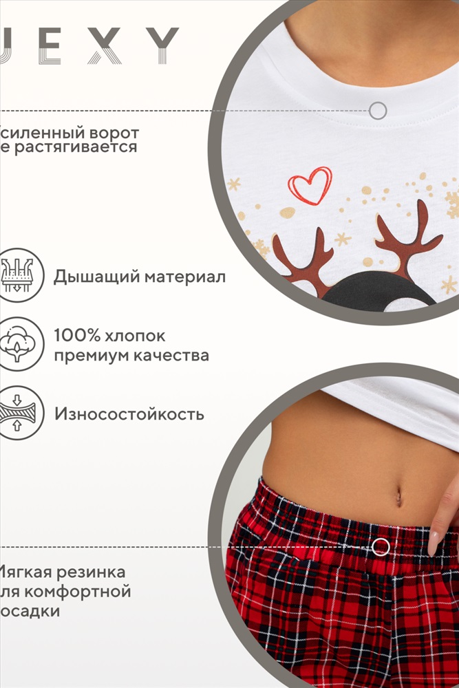Состав: Хлопок 100% Модель: Пижама женская Пингвин Тип товара: пижама с брюками Материал: кулирка | кулирка Бренд: JEXY Карман: боковые Назначение: для дома НДС: 5% Особенности: на резинке Отделка: с карманами | с печатью Посадка: средняя посадка Рисунок: клетка | зверюшки Рукав: короткий рукав Сезонность: лето | осень | весна | зима Силуэт: полуприлегающий | прямой | свободный Скидка: любая | от 10% и больше | от 30% и больше Стиль: домашний Воротник: без воротника Застежка: без застежки Создайте уютное настроение этой зимой с женской новогодней пижамой, созданной для комфорта и благополучия на длительные зимние вечера. Этот легкий костюм из мягкого хлопка подарит незабываемое ощущение нежности и уюта для женщин всех возрастов. Трикотажный комплект сочетает в себе современный стиль с традиционными элементами рождественских нарядов, идеально подходящий как для домашнего использования, так и в качестве подарка. Пижама - это сочетание брючного кроя и свободного топа с коротким рукавом, выполненное в формате двойки с брюками оверсайз. Эта одежда для дома дарит свободу движений благодаря своему невесомому материалу и облегченному дизайну. Брюки со штанами большого кроя обеспечивают максимальный комфорт на каждый день, а приятная текстура хлопкового трикотажа делает их идеальными для повседневного ношения. Секрет этой домашней одежды заключается в её универсальности: она подходит не только женщинам разных размеров, но и являясь замечательным выбором для беременных, обеспечивая оптимальную посадку благодаря своей просторной конструкции. Независимо от того, предпочитаете ли вы более облегающие или большие вещи этот костюм станет верным спутником на все случаи жизни. Повседневный стиль одежды на каждый день становится все популярнее среди современных девушек благодаря своей универсальности. Мягкость материала поможет расслабиться после долгого дня и насладиться отдыхом дома без чувства скованности. Это идеальное решение тем, кто ценит практичность и удобство в одежде для дома. Костюм подходит как подросткам, так и взрослым женщинам благодаря многообразию представленных размеров от небольших до больших. Традиционные элементы новогодних узоров украшают лицевую сторону домашнего комплекта, подчёркивая тематическое направление изделия. Подарите себе радость вместе с этим трикотажным набором. Дизайн акцентирован простотой линий при сохранении праздничных мотивов на Рождество. Таблица размеров и весаБрюки
