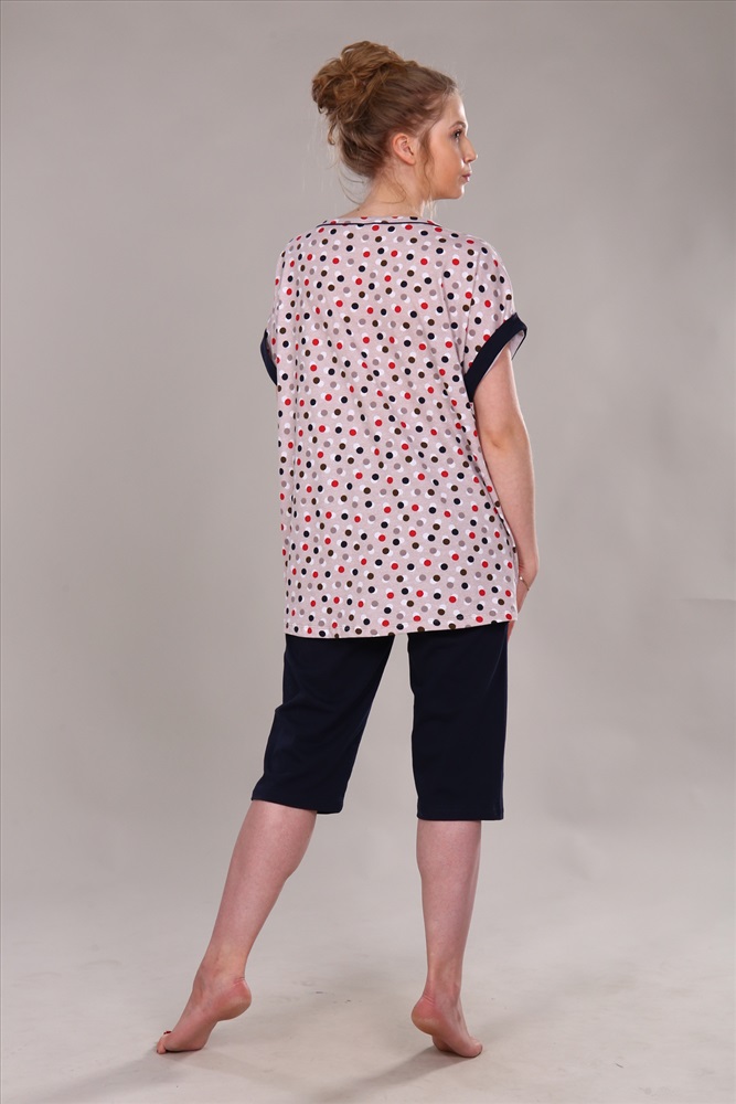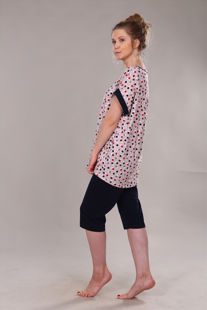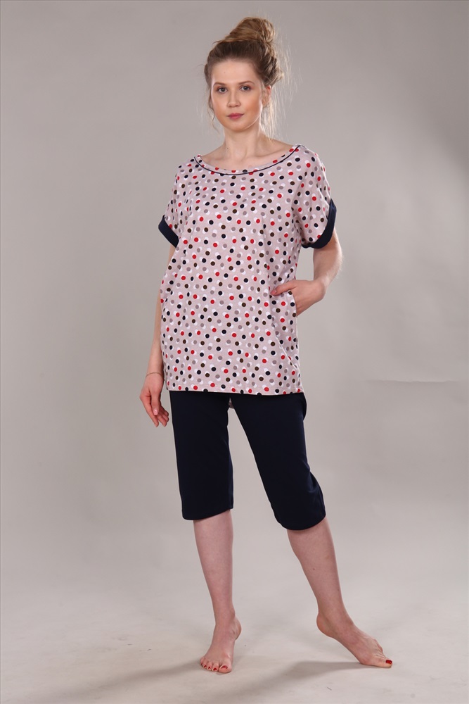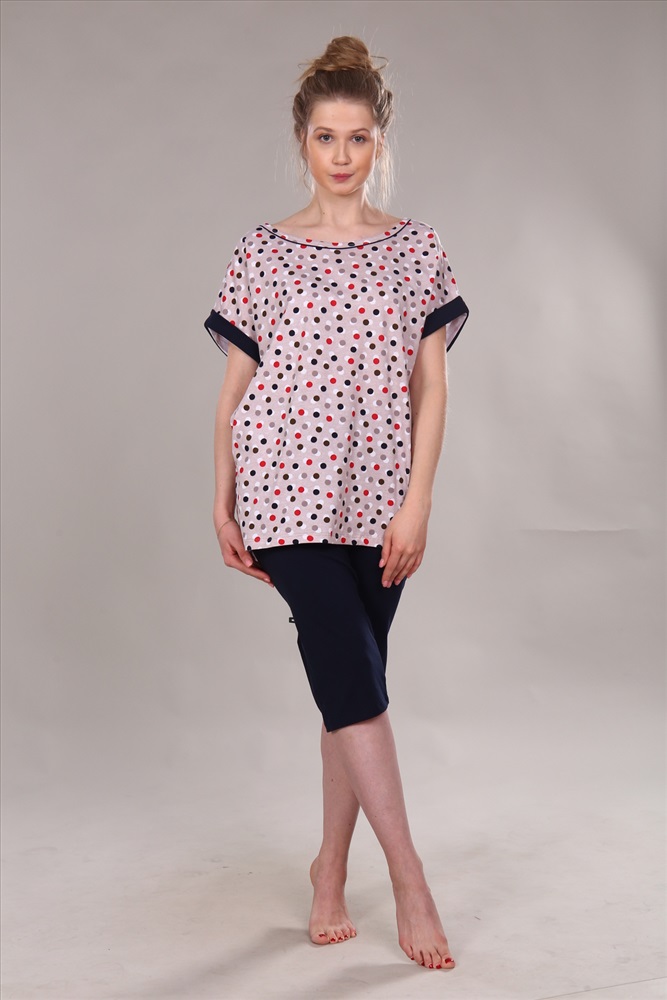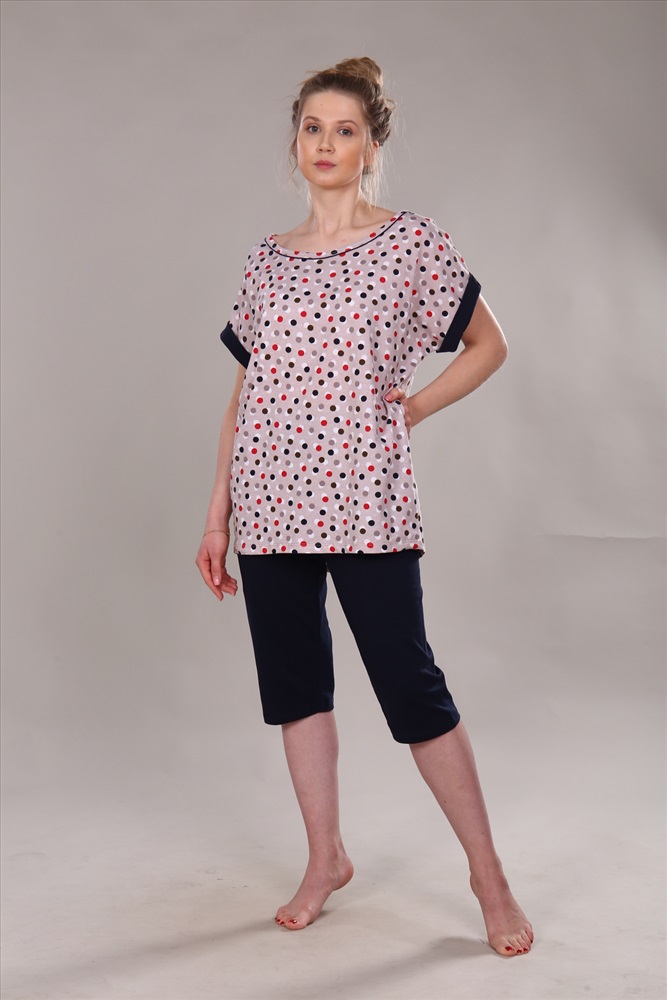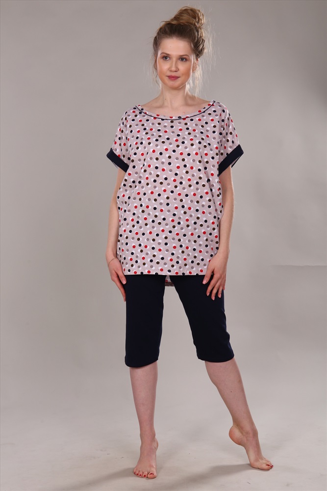 Застежка: без застежки Домашний костюм с удлиненной футболкой с коротким рукавом и бриджами с боковыми карманами.