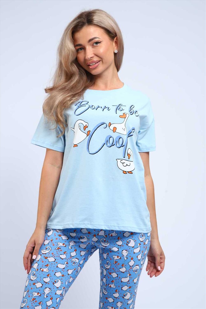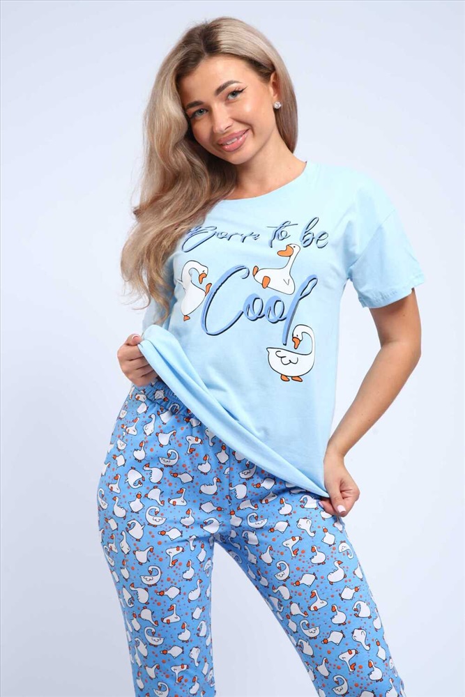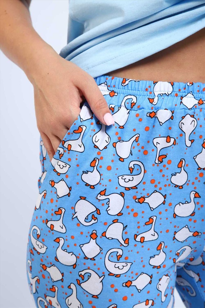 Застежка: без застежки Нежная и легкая пижама из 100% хлопка, прекрасно сидит на фигуре. Брюки бананчики, с принтом гуси, выполнены с поясом на резинке, дополнены карманами. Отличный вариант для подарка, путешествия, отдыха...