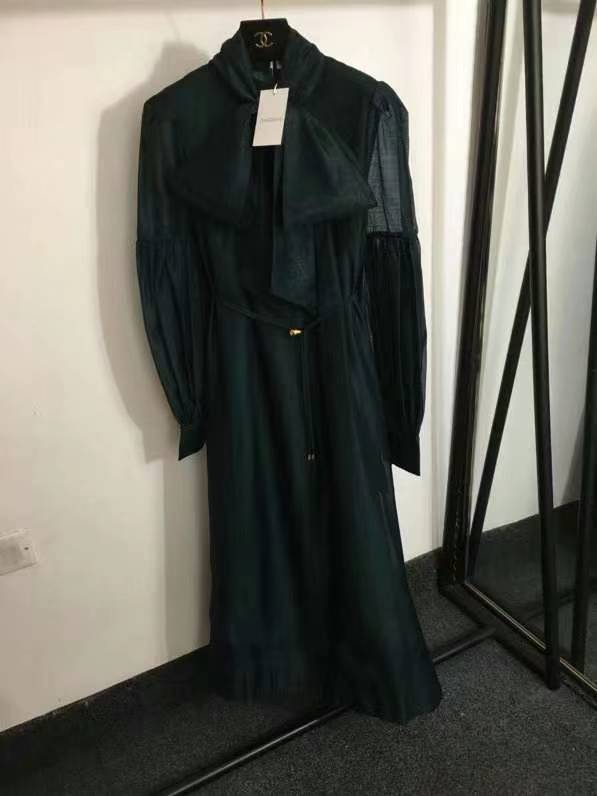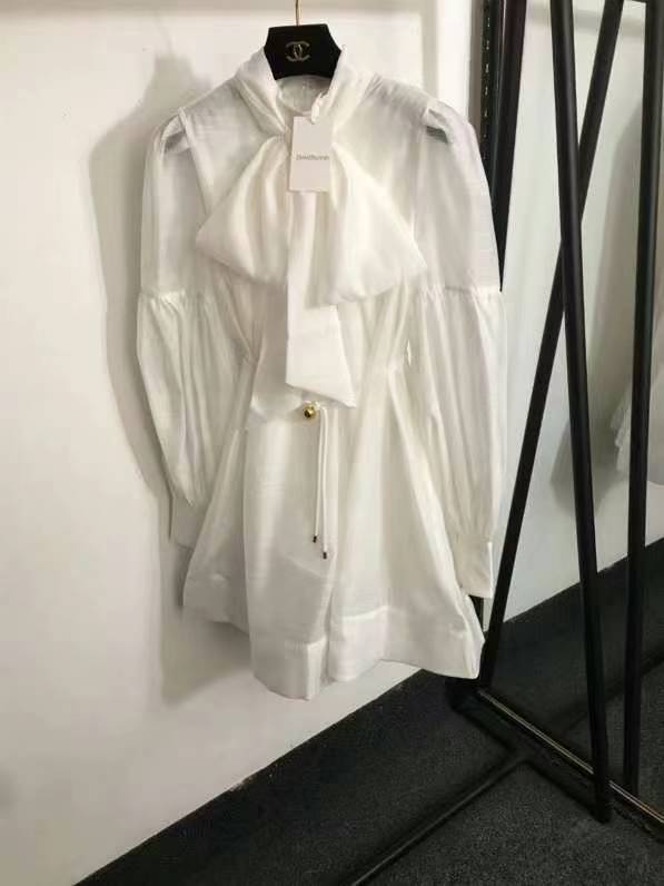 платье с длинными рукавами и поясом-фонариком от Zimmermann, длинная юбка, белый, красный, желтый, зеленый, S-XL, [размер L; обхват груди 104, длина рукава 70, общая длина 130]
