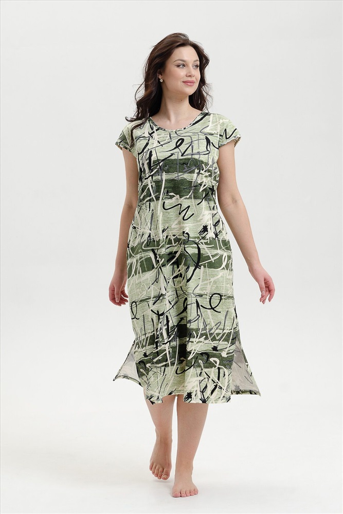 ID товара: 978284 Состав: 100% Хлопок Сезон: Весна/Лето Длина: Миди Фасон: Полуприлегающий Рукав: короткие Вырез горловины: Округлый Рисунок: Фантазийный Тип карманов: В шве Декоративные элементы: Принт Основная ткань: Хлопок Стиль: повседневный Вид ткани: Кулирка Страна бренда: Россия Страна производства: Россия Платье женское удлиненное с легким рукавом - крылышком выполнено из кулирки 100% хлопок оригинальной расцветки. По бокам глубокие разрезы, карманы в швах, горловина обработана узким кантом. Платье элегантно подчеркивает фигуру, длина и разрезы придают стройность, оно отлично подойдет для прогулок и отдыха. Комментарии к товару