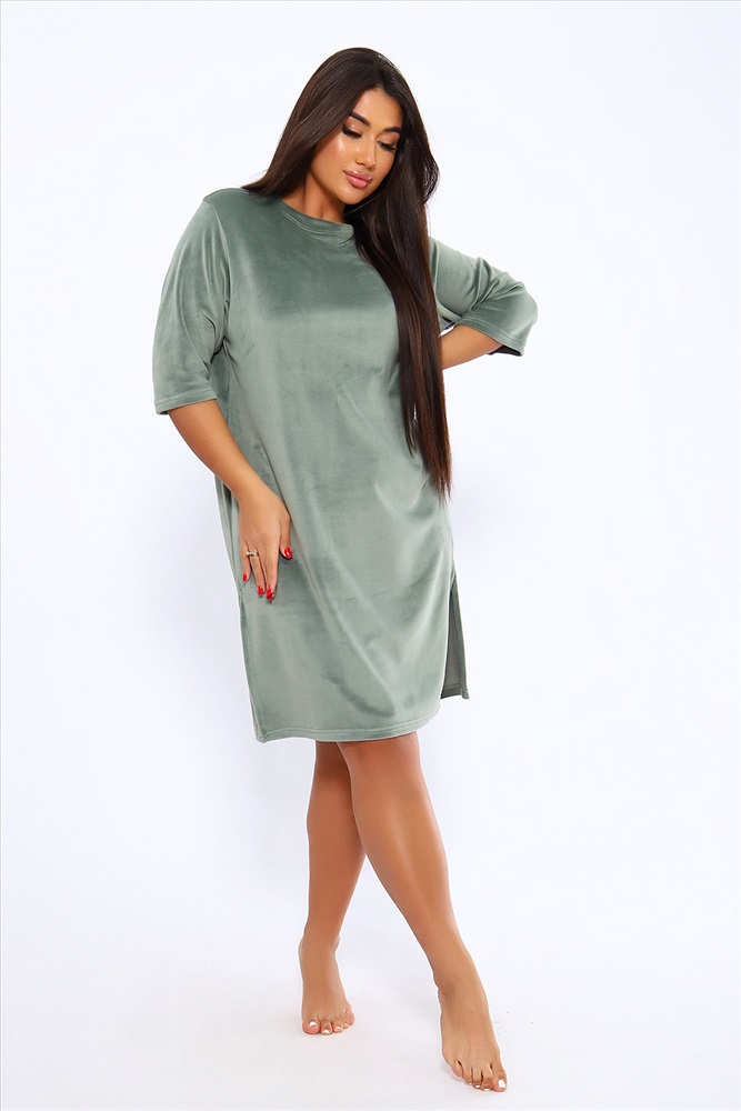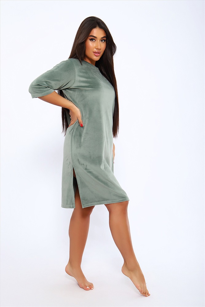 Состав: ПЭ 100% Модель: Платье 042 Бренд Rozhkova KV Тип товара: платье Материал: велюр | велюр Бренд: Rozkova KV Длина: средняя длина Карман: без карманов Назначение: для дома НДС: 5% Рукав: рукав 3/4 Сезонность: лето | осень | весна | зима Силуэт: прямой | свободный Стиль: домашний | повседневный Воротник: без воротника Застежка: без застежки Платье женское средней длины свободного кроя из мягкого велюра. Рукав средней длины, по бокам разрезы, горловина обработана бейкой из основной ткани. Платье отлично подойдет для дома и отдыха. Таблица размеров и веса