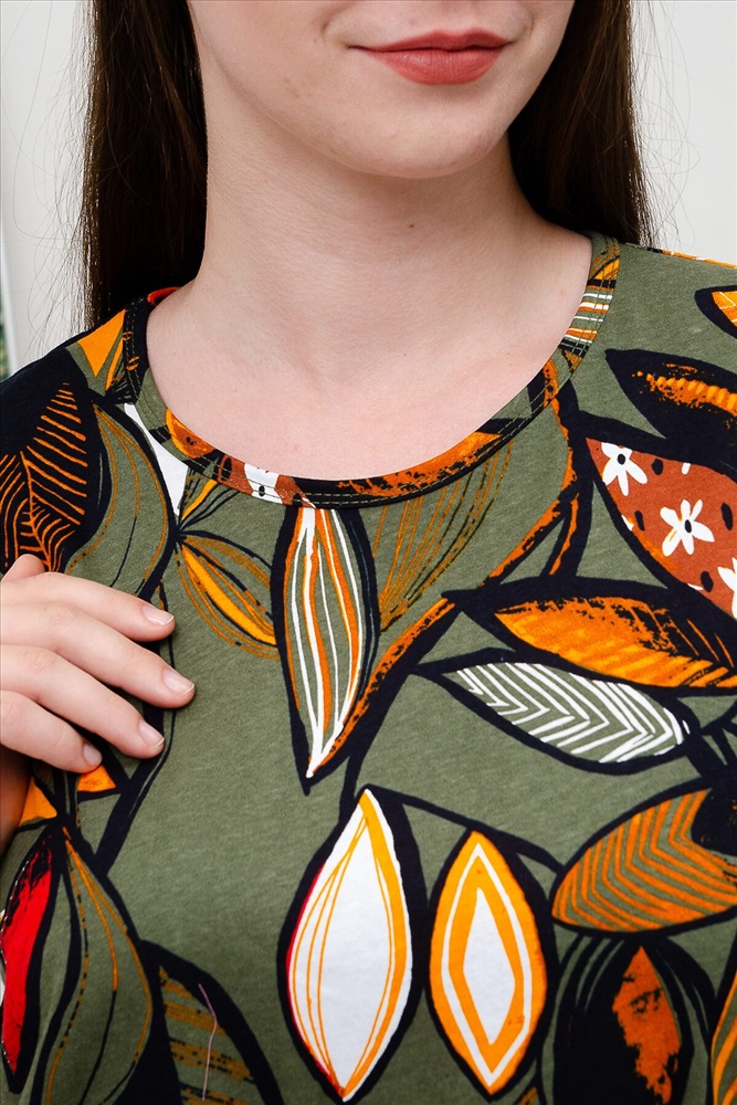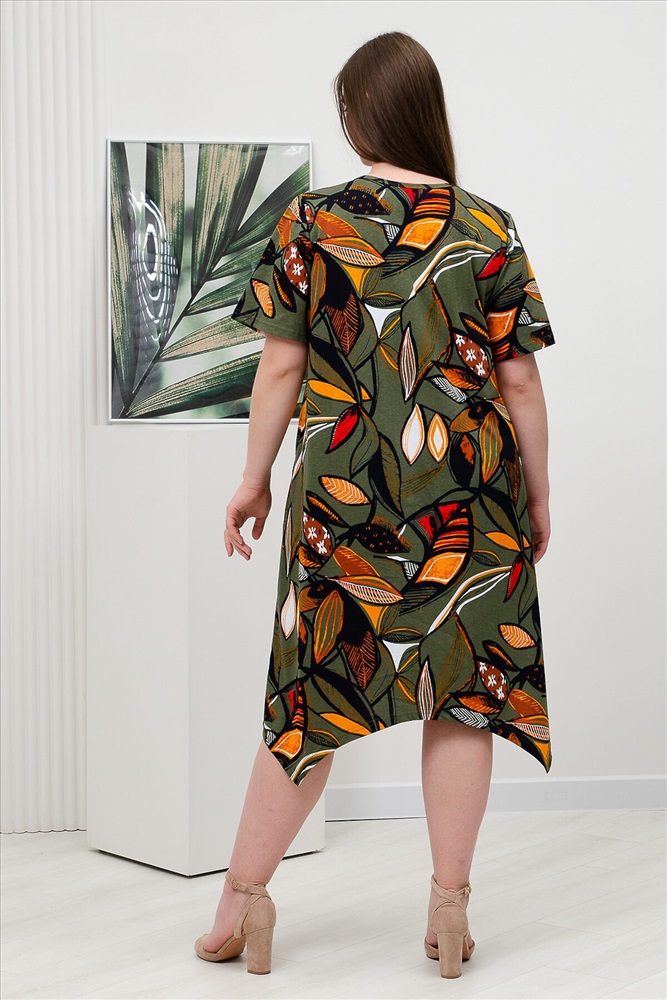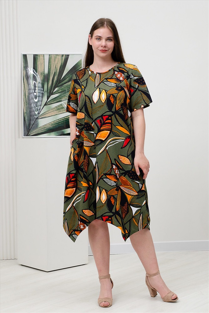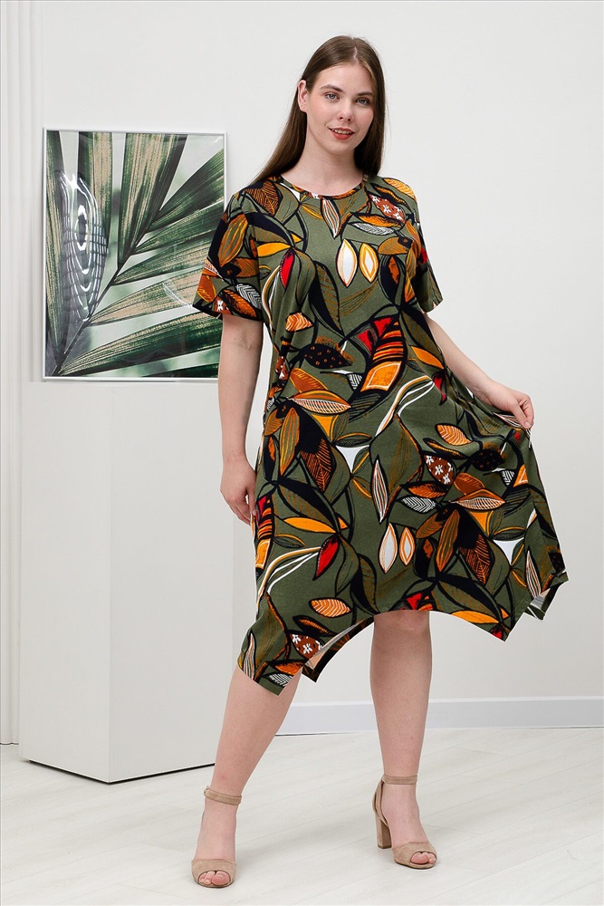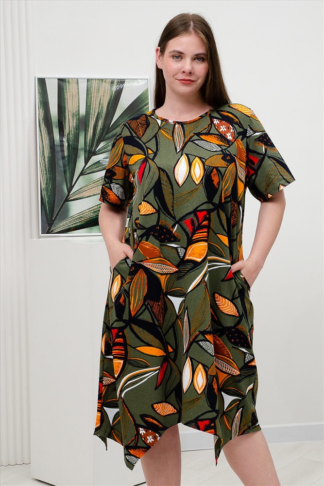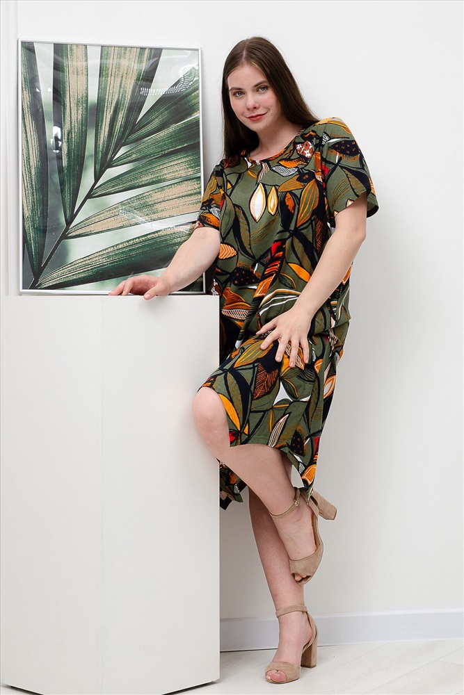 ID товара: 902985 Состав: 100% Хлопок Сезон: Весна/Лето Длина: Ниже колена Фасон: Свободный крой Рукав: короткие Вырез горловины: Округлый Рисунок: растительный Тип карманов: Прорезные Декоративные элементы: Принт Основная ткань: Хлопок Стиль: повседневный Вид ткани: Кулирка Страна бренда: Россия Страна производства: Россия Платье женское имеет свободный крой, фигурный низ и короткий рукав. С принтом листья выполнена из 100% натурального хлопка. Свободный стиль подходит для любой женщины, ведь он может скрыть недостатки фигуры и подчеркнуть ее достоинства. Платье послужит прекрасным подарком для себя, коллеги и любимым дочке или сестре. Натуральный состав из 100% хлопка обеспечит вам комфорт и хорошее настроение. Данная модель платья отлично подойдет для прогулки, на пляж, море, повседневное, на каждый день, домашней одежды, станет платьем Вашего лета. Комментарии к товару
