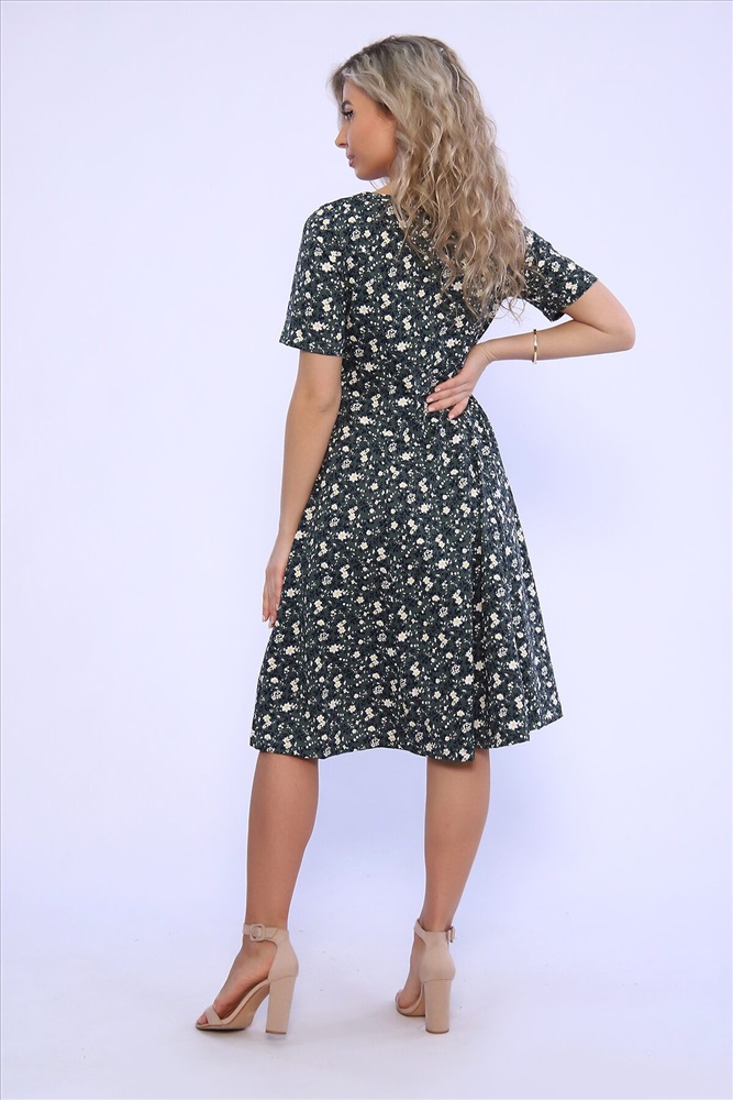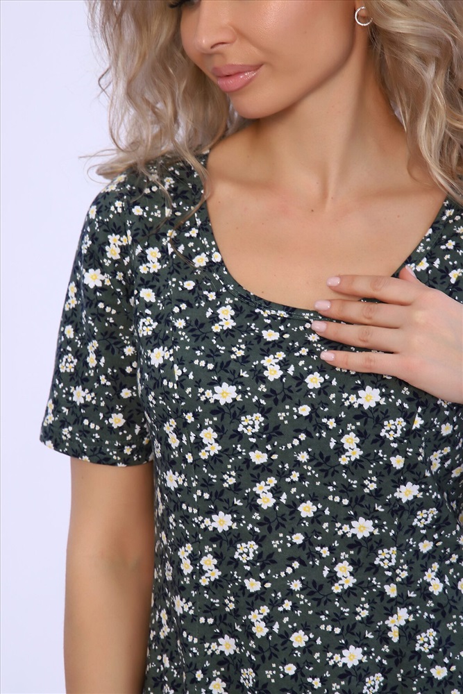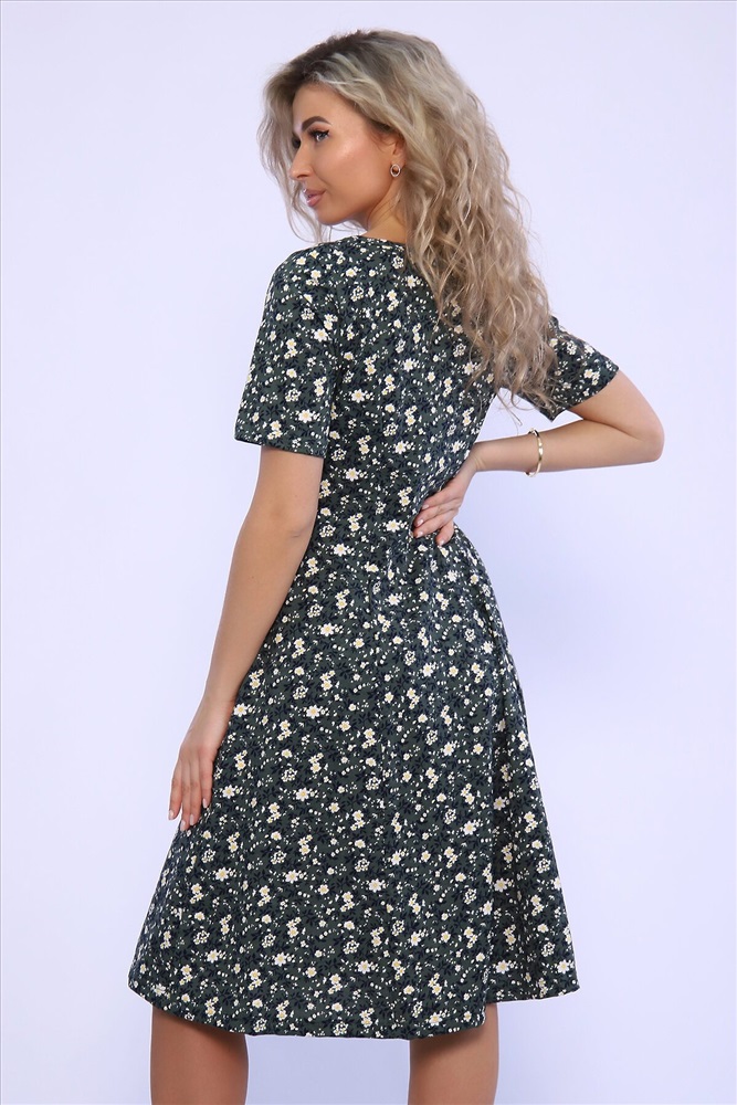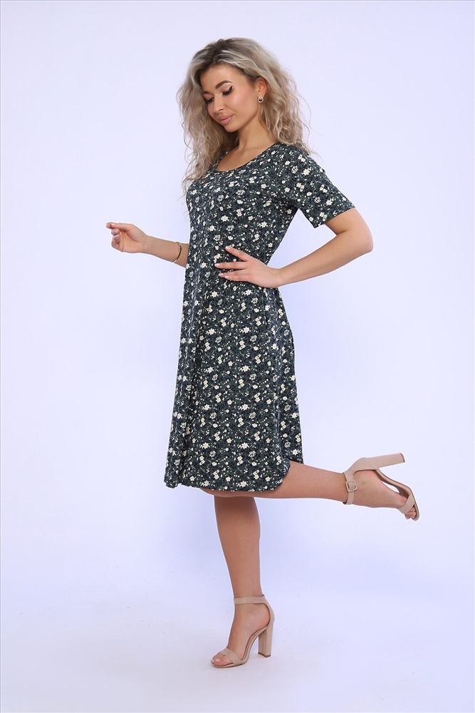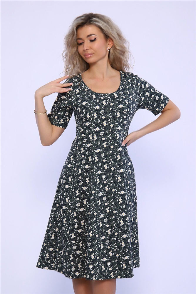 ID товара: 979100 Состав: 100% Хлопок Сезон: Весна/Лето Длина: Ниже колена Фасон: Расклешенное Рукав: короткие Вырез горловины: Округлый Рисунок: цветочный Декоративные элементы: Принт Основная ткань: Хлопок Стиль: классический Вид ткани: Кулирка Страна бренда: Россия Страна производства: Россия Платье полуприлегающего силуэта, приталенное с расклешенной юбкой. Полочка и спинка с рельефами. Карманы в боковых швах. Короткие рукава. Идеально для повседневной носки. Комментарии к товару