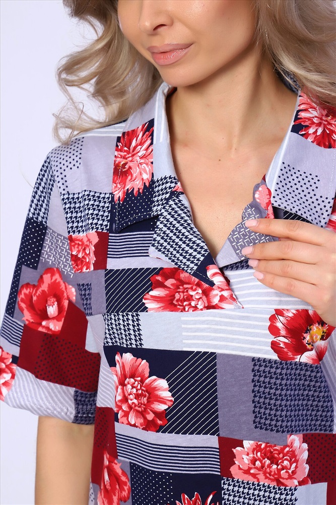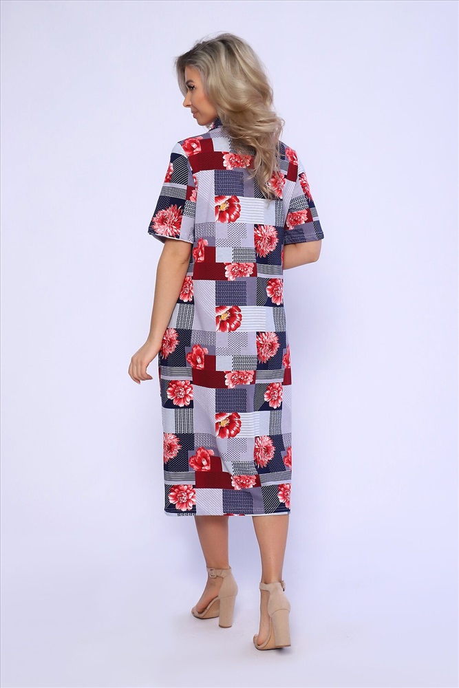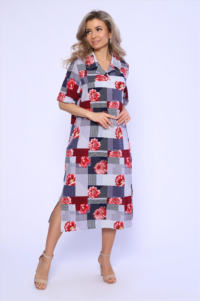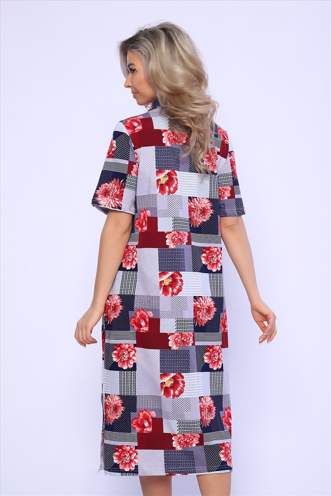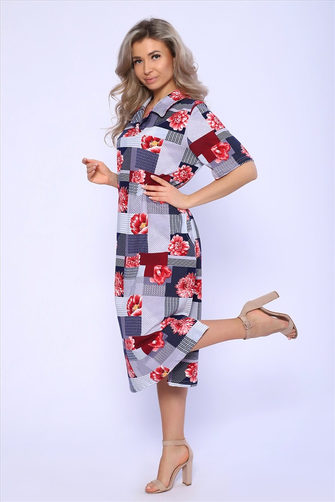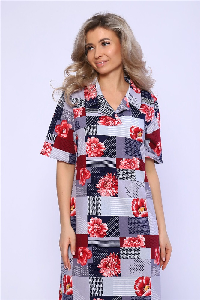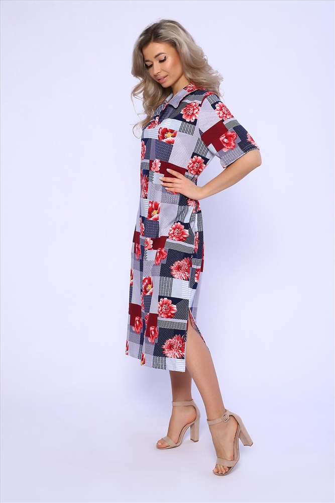 ID товара: 989548 Состав: 100% Хлопок Сезон: Весна/Лето Фасон: Полуприталенный Рукав: Короткий Вырез горловины: Отложной воротник Рисунок: растительный, цветочный Вид ткани: Кулирка Страна бренда: Россия Страна производства: Россия Платье полуприлегающего силуэта с короткими рукавами и рубашечным воротником. Карманы и разрезы в боковых швах. Комментарии к товару