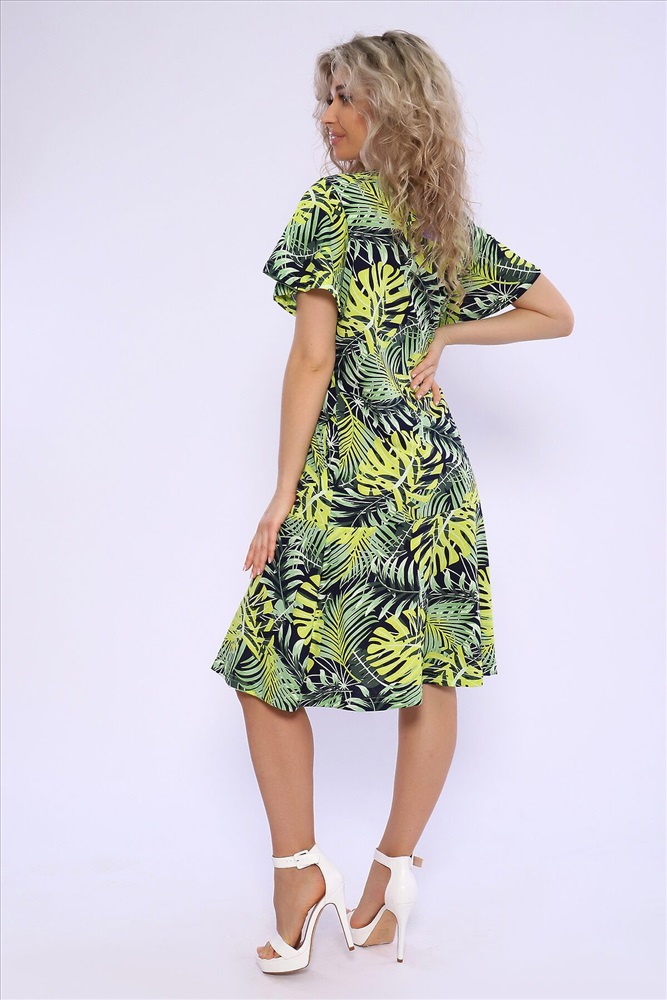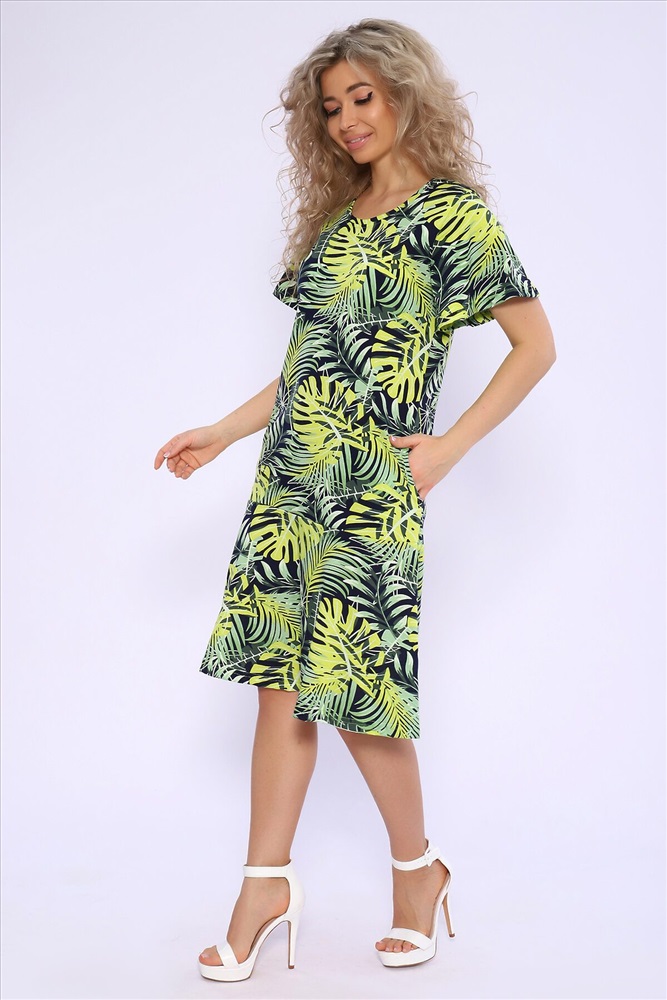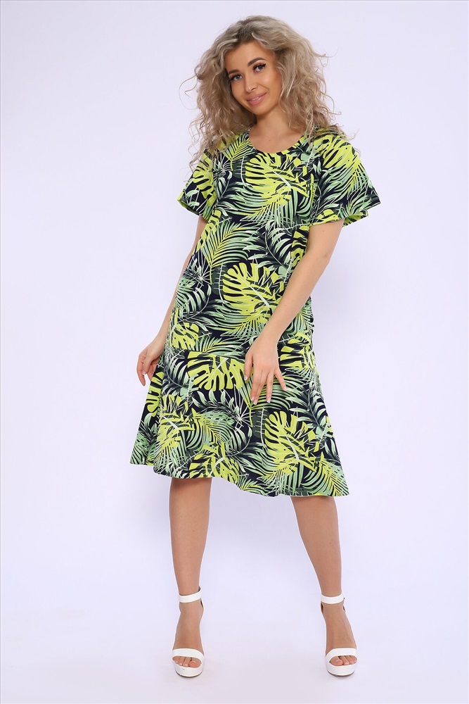 ID товара: 1000591 Состав: 100% Хлопок Сезон: Весна/Лето Фасон: Полуприлегающий Рукав: Короткий Вырез горловины: Круглый Рисунок: растительный, цветочный Вид ткани: Кулирка Страна бренда: Россия Страна производства: Россия Платье полуприлегающего силуэта с короткими расклешенными рукавами. По низу изделия притачные воланы. Комфортно для повседневной носки. Комментарии к товару