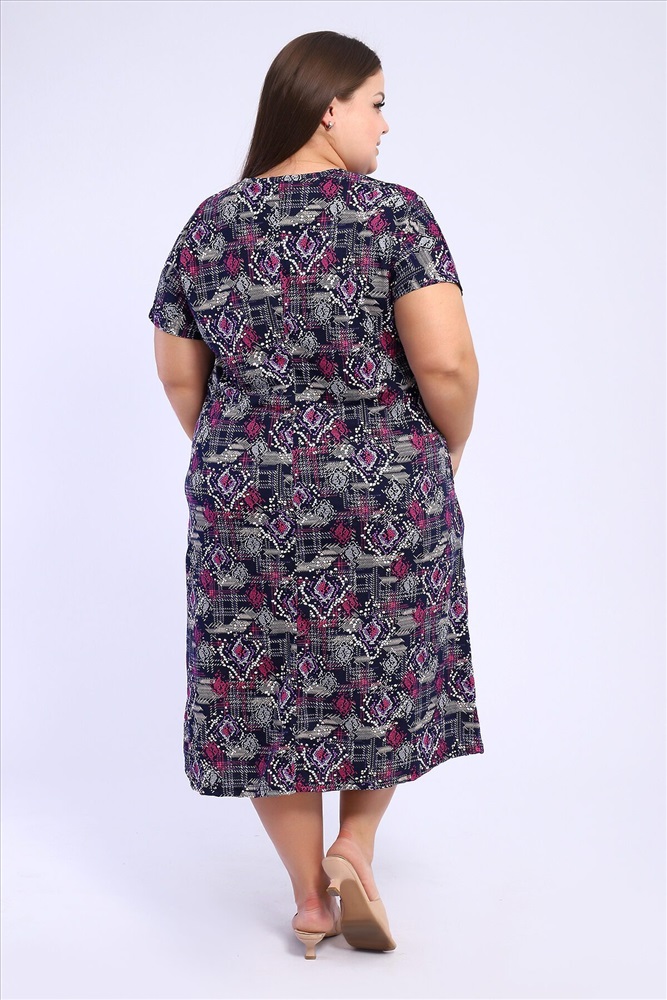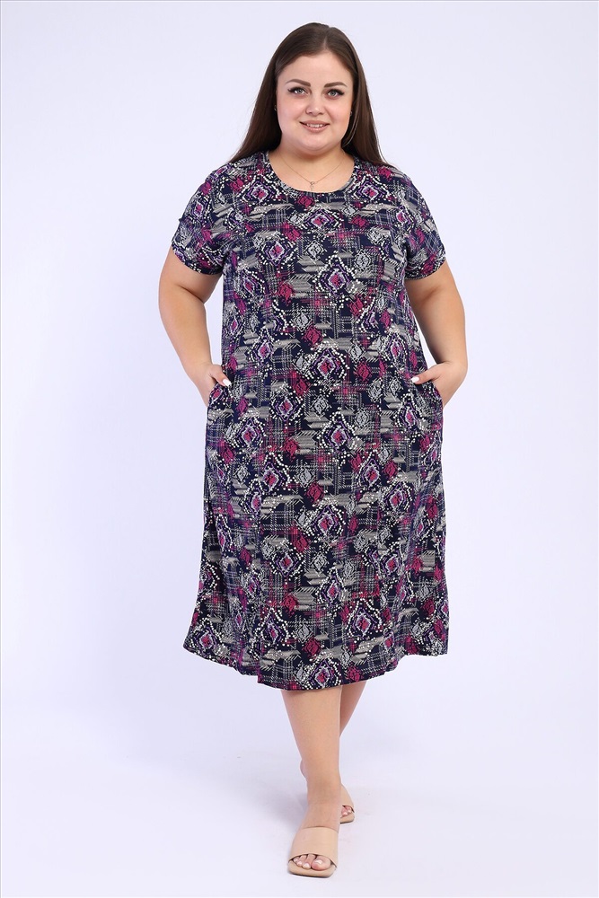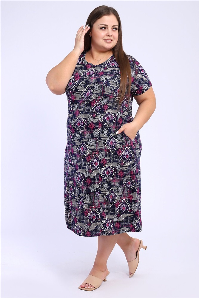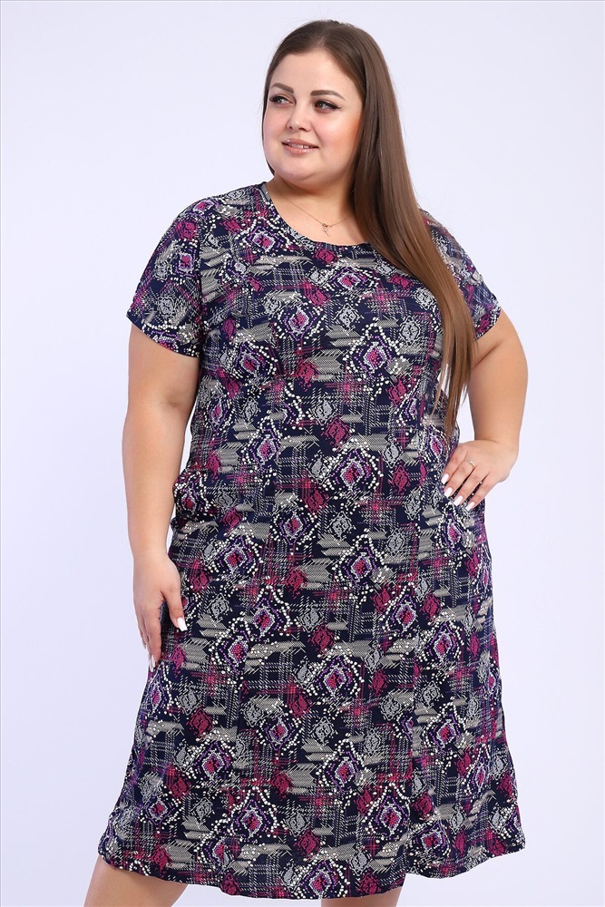 Страна производства: Россия Платье свободного кроя, спинка разрезная. Полочка с отрезными бочками. В боковых швах карманы.