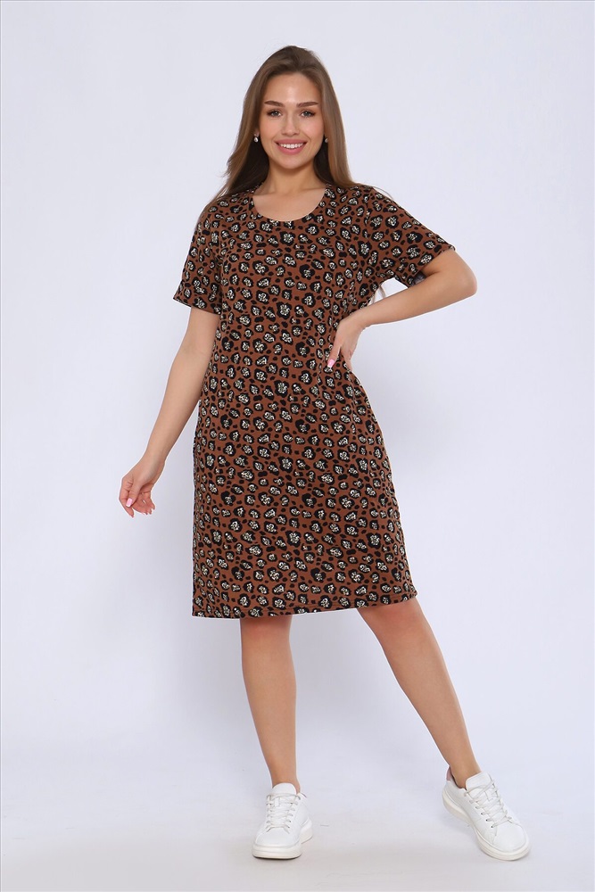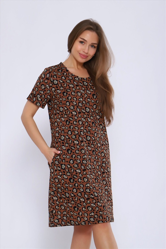Страна производства: Россия Платье полуприлегающего силуэта с короткими рукавами и отворотными манжетами. Карманы в боковых швах.