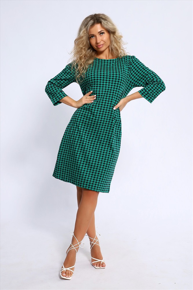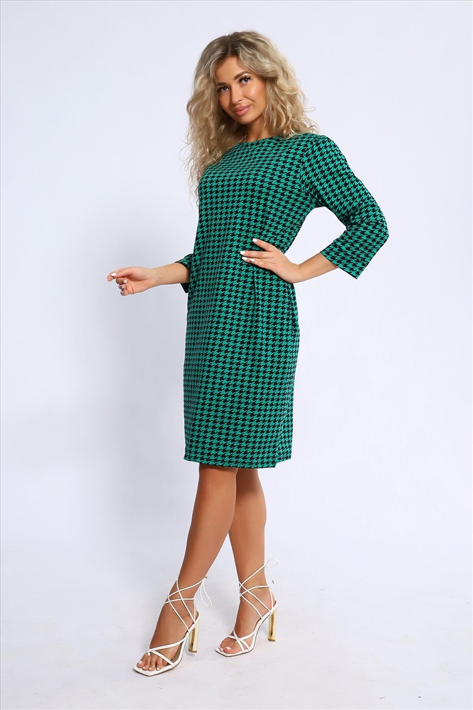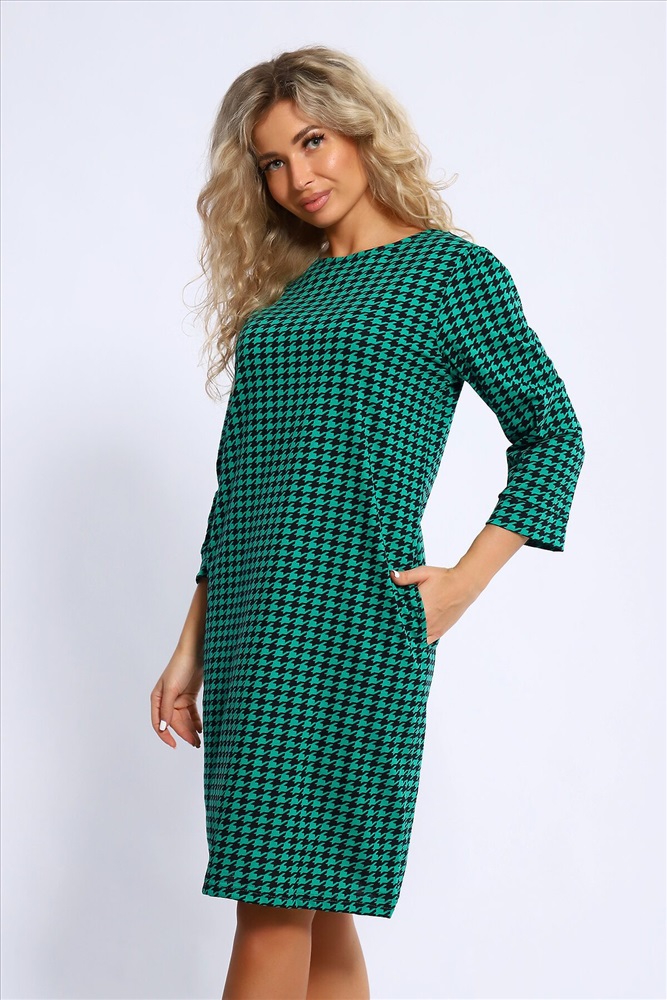 Страна производства: Россия Платье полуприлегающего силуэта с боковыми карманами. Рукава длиной 3/4 с манжетами и на сборке по окату.