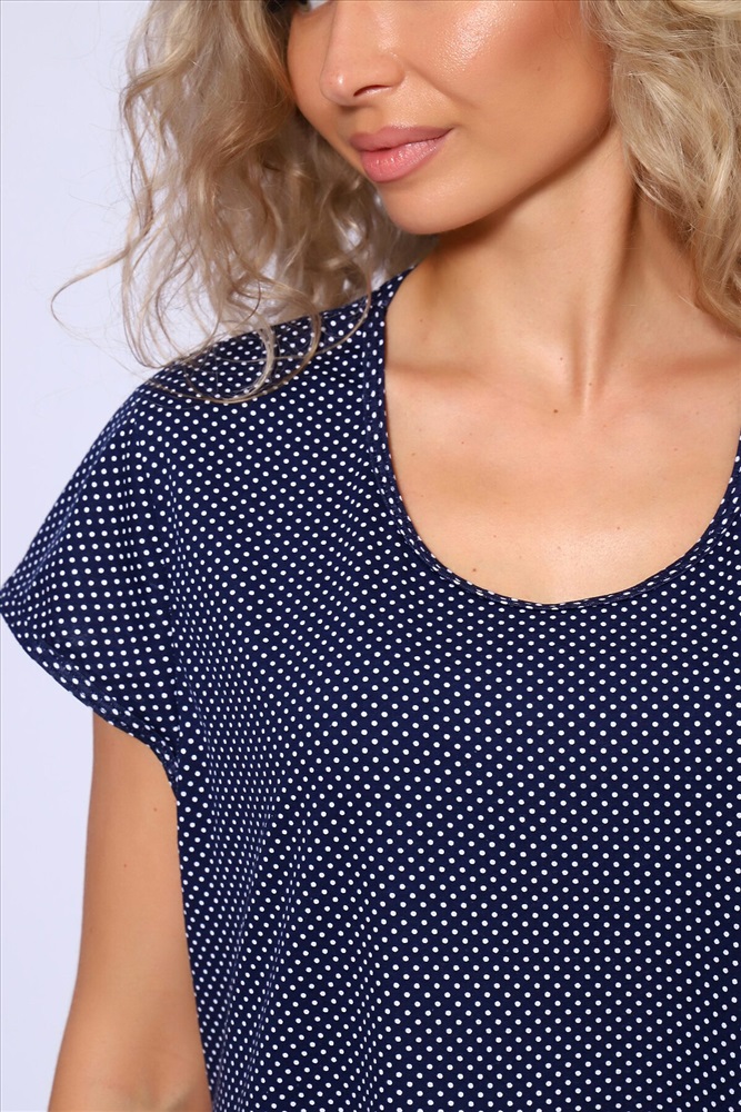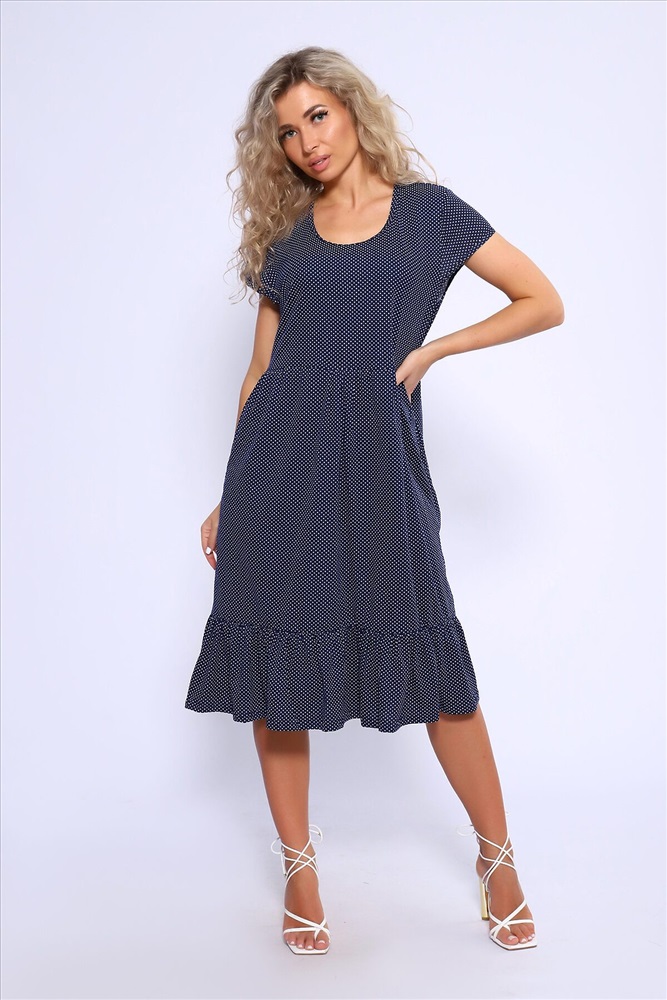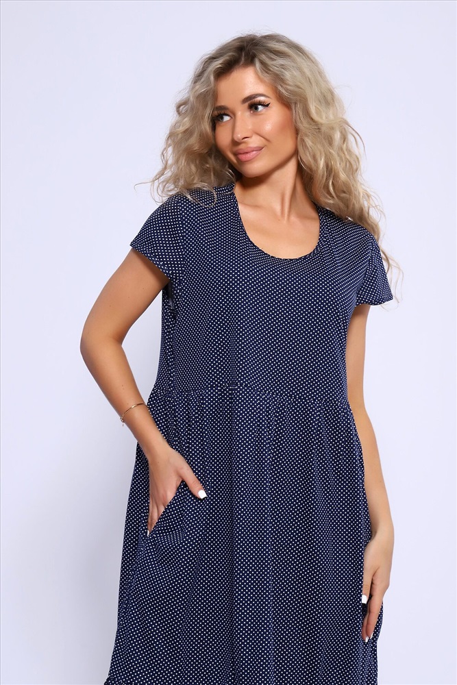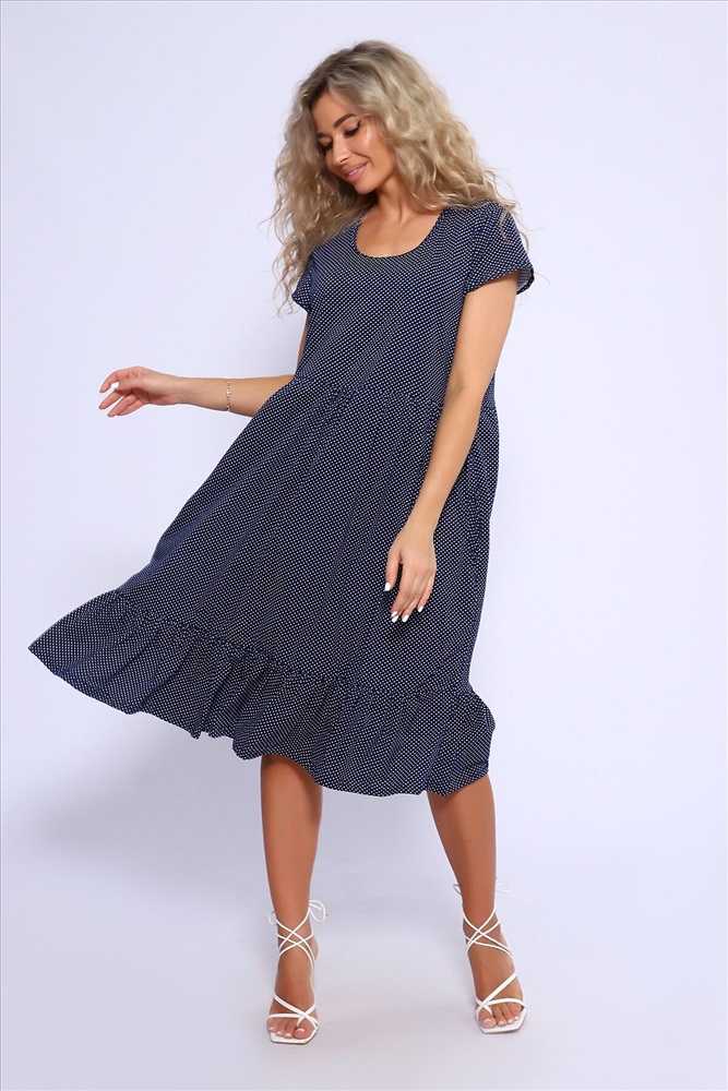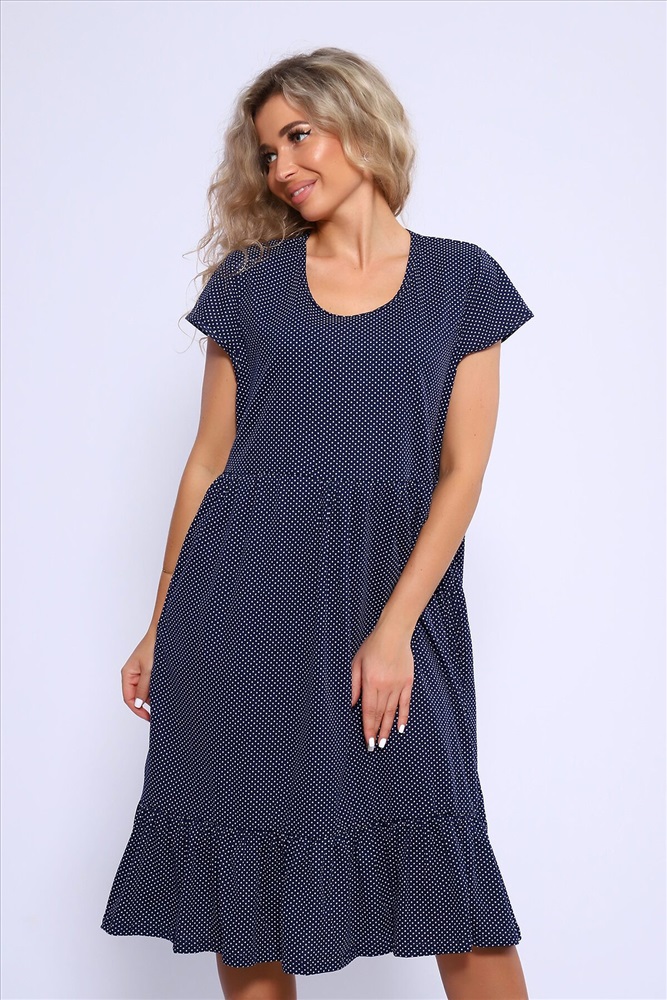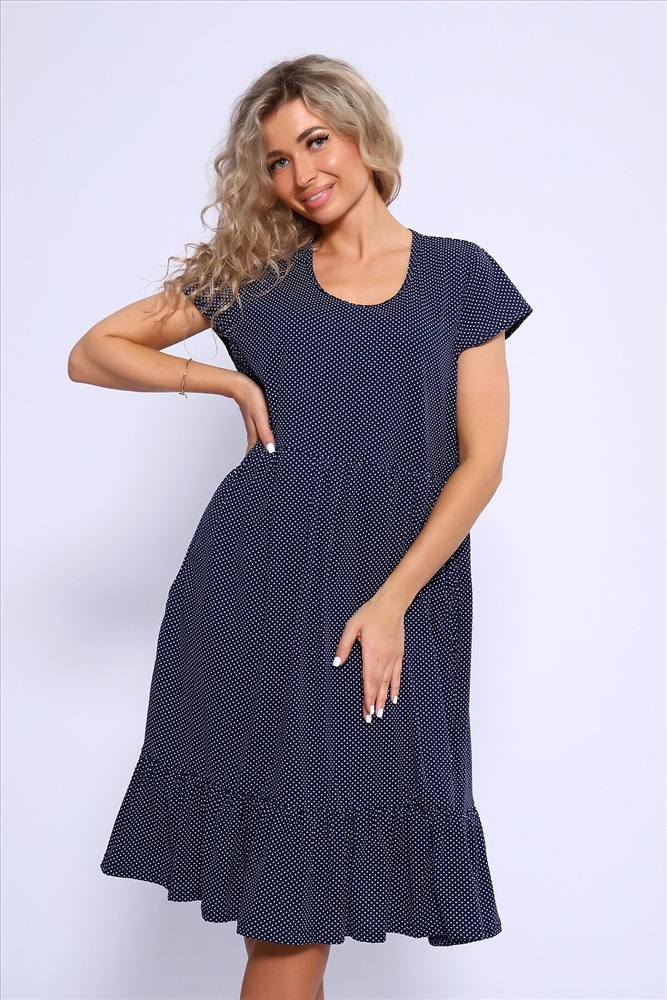 Страна производства: Россия Свободное платье с короткими рукавами и двухъярусной юбкой на сборке. Карманы в боковых швах.