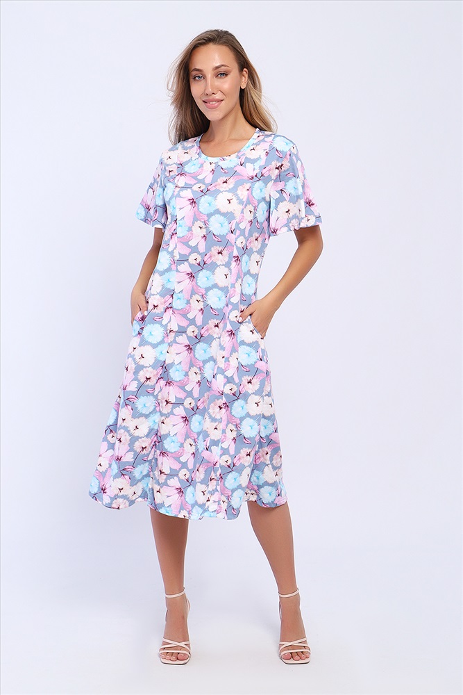 Состав: 100% хлопок Модель: Платье 13239 Тип товара: платье Материал: кулирка | кулирка Бренд: Натали Суслова Карман: боковые Отделка: с карманами Рисунок: абстракция | цветы Рукав: короткий рукав Сезонность: лето | весна Силуэт: полуприлегающий | расклешенный Стиль: повседневный Воротник: без воротника Застежка: без застежки Платье полуприлегающего силуэта с короткими рукавами - крылышками. В боковых швах удобные карманы. Платье приталенное с разрезной спинкой и бочками на полочке. Таблица размеров и веса