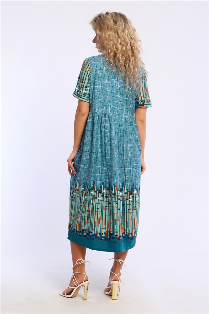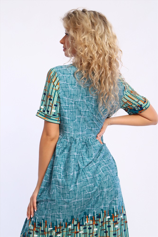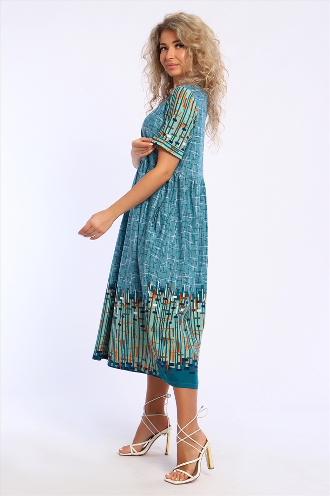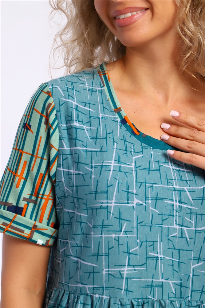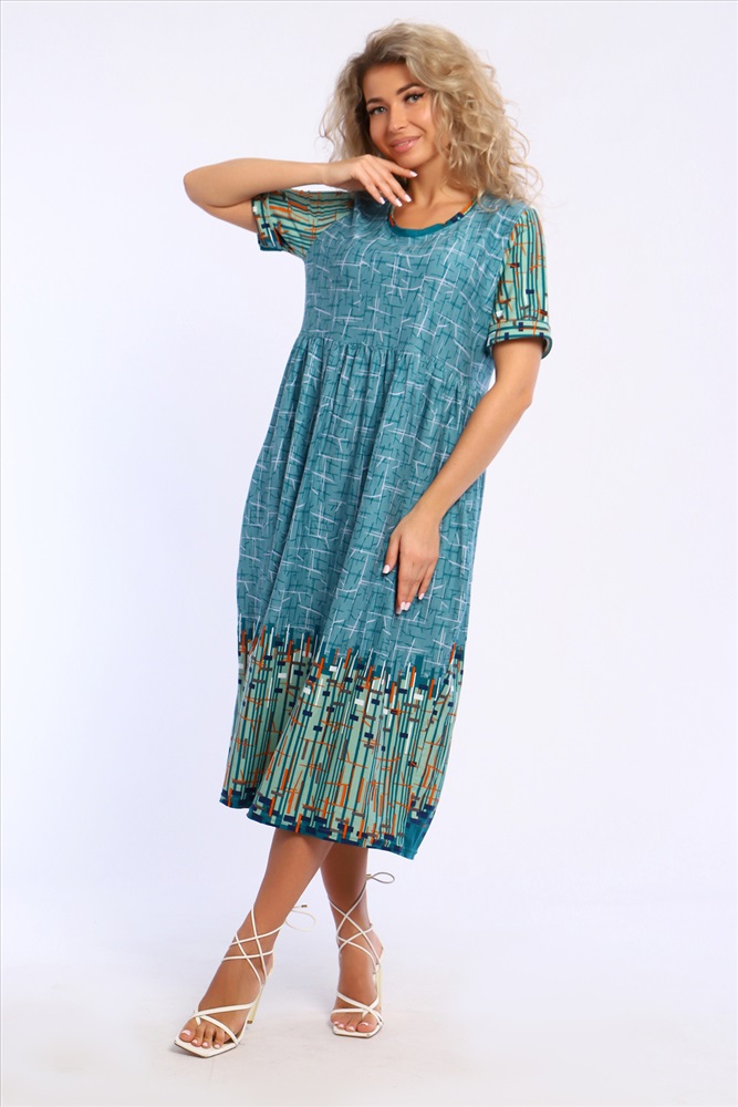 Застежка: без застежки Платье с юбкой на сборке и короткими рукавами. В боковых швах удобные карманы.