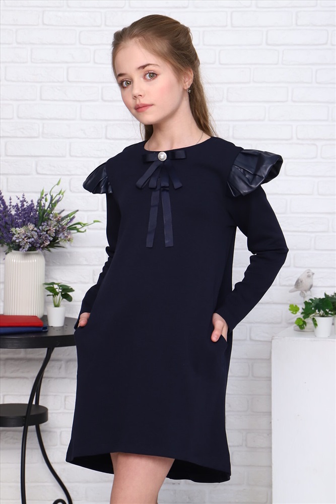 ID товара: 908080 Состав: 67% Хлопок, 33% Полиэстер Сезон: Демисезон Длина: До колена Фасон: Прямое Рукав: длинные Вид застежки: Молния Вырез горловины: Округлый Тип карманов: С отрезным бочком Декоративные элементы: Бантик Основная ткань: Хлопок Стиль: классический Вид ткани: Джерси Страна бренда: Россия Страна производства: Россия Трикотажное платье для девочек в школу бренда Jersey Lab отлично подойдет для повседневной носки школьницам всех возрастов (первоклассницам, девочкам средних классов, а также старшеклассницам и выпускницам). Крылышки платья выполнены из эко-кожи. Также школьную форму можно надеть на последний звонок или на праздник 1 сентября. Универсальный свободный фасон с брошкой подходит на все типы фигур: для худых и для полных. Плотный, но дышащий трикотаж не дает усадки, не теряет формы после стирки, не линяет, не скатывается и не мнется. Лаконичный крой и благородная расцветка позволит с легкостью подобрать аксессуары и обувь для создания стильного образа. Детское платье-трапеция из хлопка не сковывает движений, а натуральный состав ткани позволяет коже дышать. Покупая платья для девочки нашего бренда, будьте уверены, что подарите ребёнку комфорт. Они стильные и качественные. Комментарии к товару