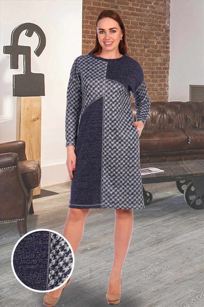ID товара: 275424 Состав: Полиэстер 85%, Вискоза 10%, Лайкра 5% Сезон: Весна/Лето Длина: До колена Фасон: Прямой Рукав: Длинный Вид застежки: Нет Вырез горловины: Круглый Рисунок: Геометрический Тип карманов: Втачные Декоративные элементы: Печатный принт Основная ткань: Полиэстер | Джерси с люрексом Стиль: Повседневный Страна бренда: Россия Страна производства: Россия Платье женское полуприлегающего силуэта. Рукав цельнокроенный со швом. На полочке по бокам внутренние карманы. Полочка состоит из четырех частей: две из основной, две из отделочной ткани с люрексом. Швы притачивания обработаны отделочными строчками. Комментарии к товару