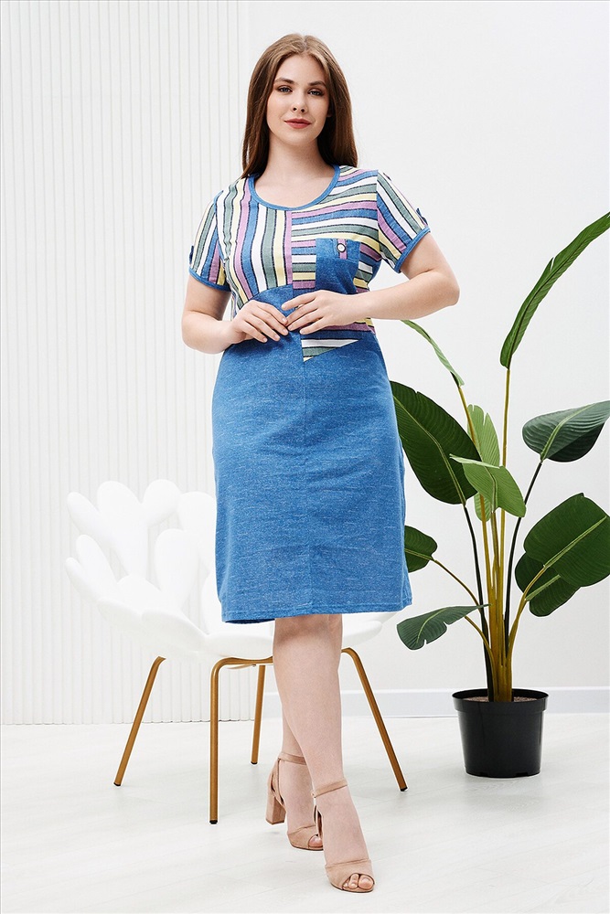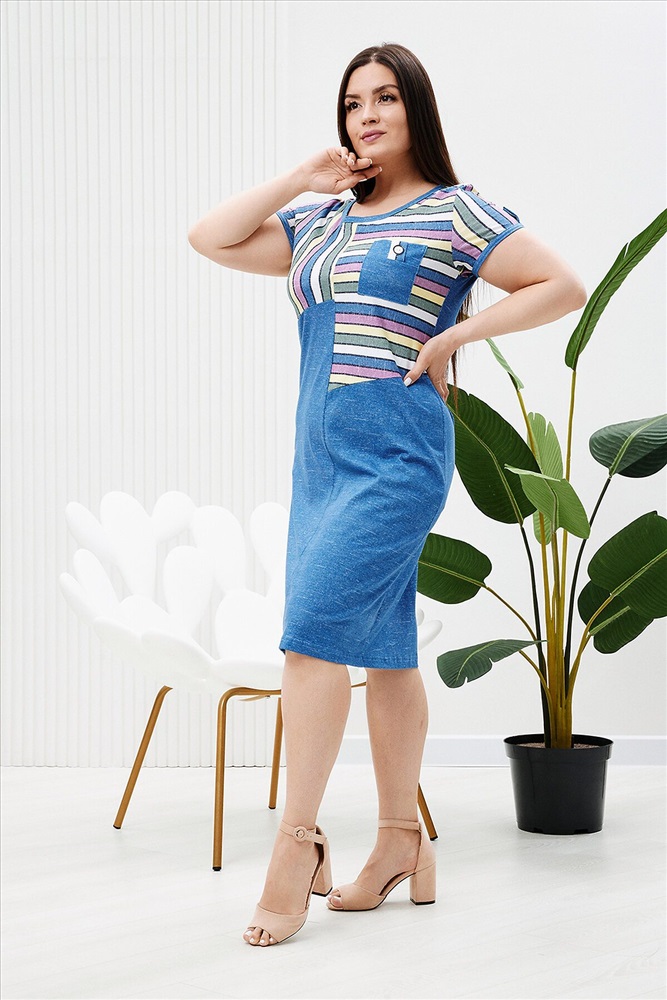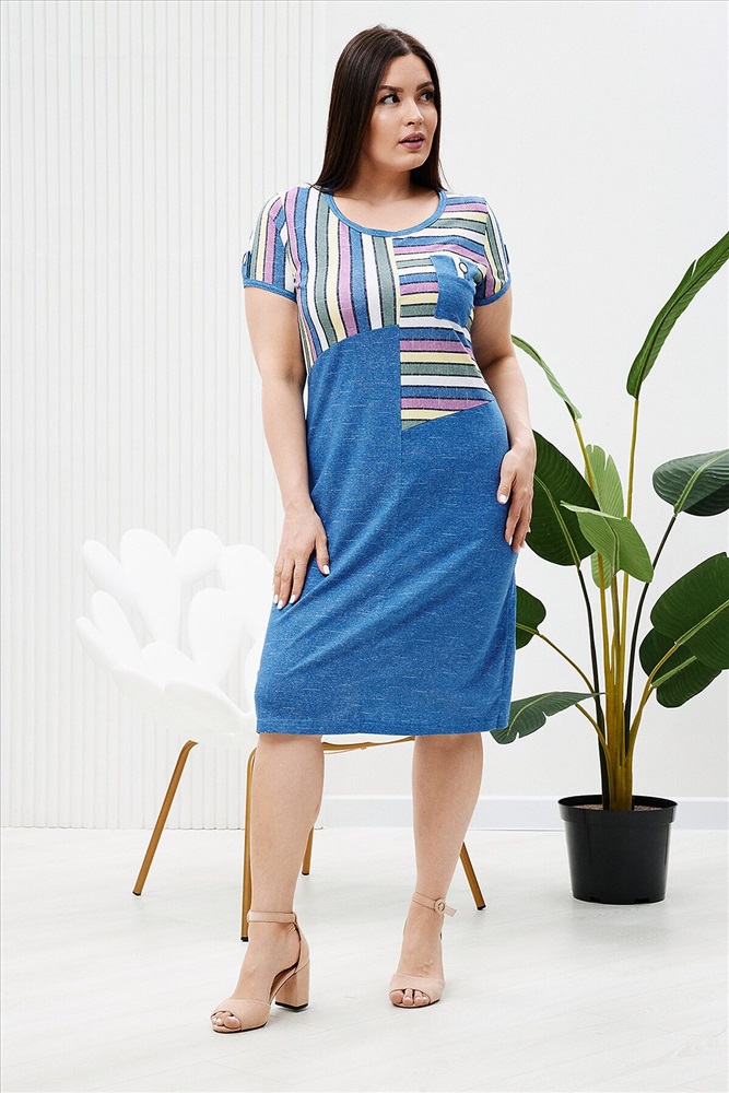 ID товара: 887464 Состав: 100% Хлопок Сезон: Весна/Лето Длина: Миди Фасон: Полуприлегающий Рукав: короткие Вырез горловины: Округлый Рисунок: Полоски Основная ткань: Хлопок | Кулирка Стиль: повседневный Страна бренда: Россия Страна производства: Россия Платье женское полуприлегающего силуэта из кулирки. Перед платья имеет асимметричный крой, нагрудный карман. Спинка на кокетке. Рукав короткий. Комментарии к товару