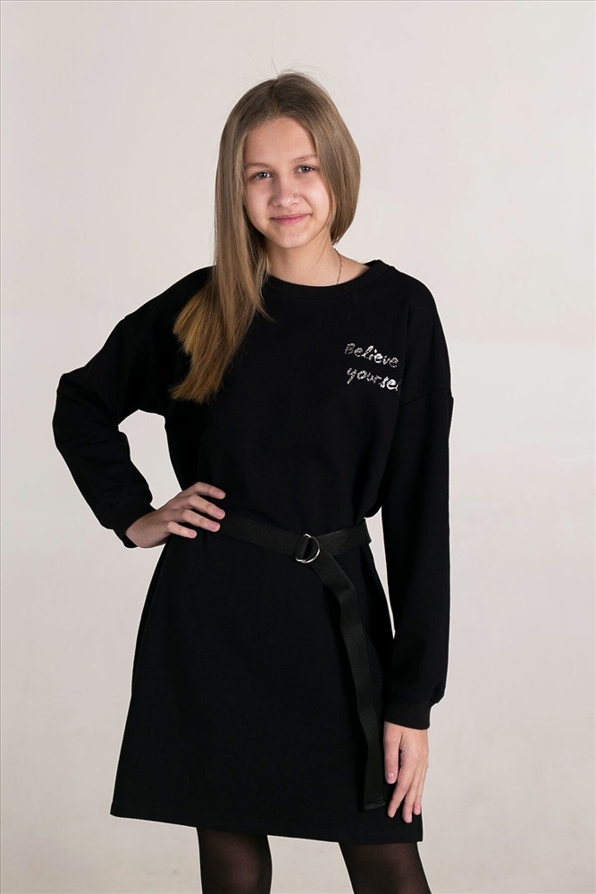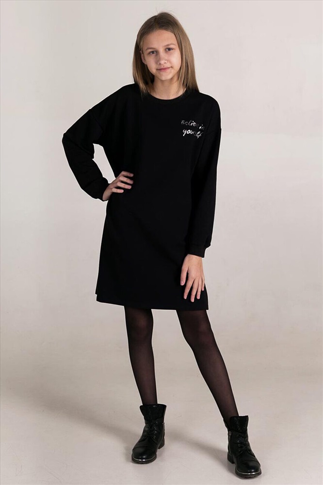 ID товара: 882946 Состав: 60% Хлопок; 34% Полиэстер; 6% Лайкра Сезон: Демисезон Длина: До колена Фасон: Прямое Рукав: длинные Вырез горловины: Округлый Рисунок: Надпись Декоративные элементы: Принт Основная ткань: Футер с лайкрой 2-х нитка Стиль: повседневный Страна бренда: Россия Страна производства: Россия Платье свободного кроя из футера с лайкрой. В комплекте пояс. Полочка декорирована печатью с использованием глиттера. Комментарии к товару