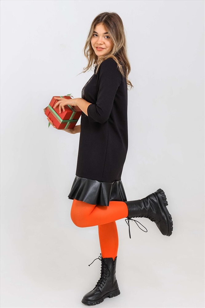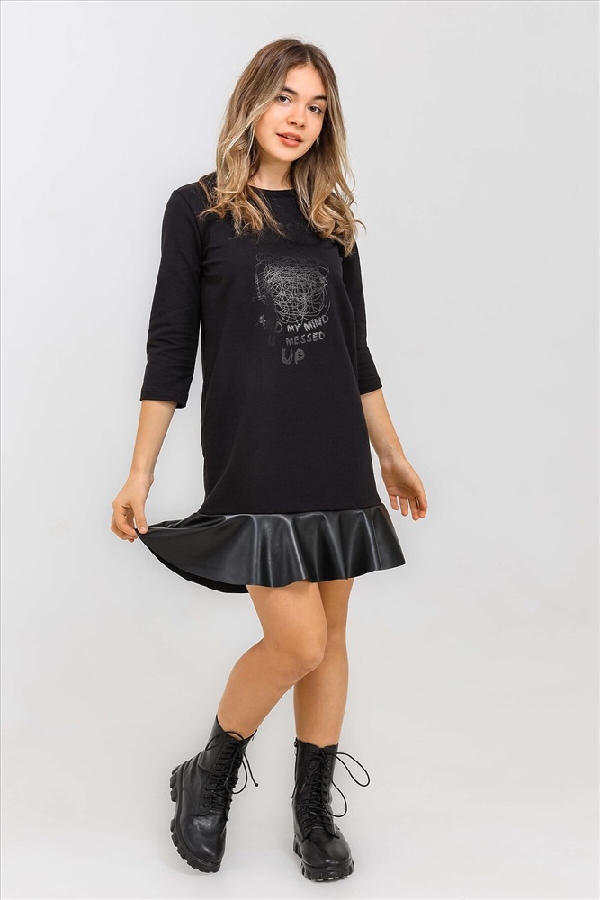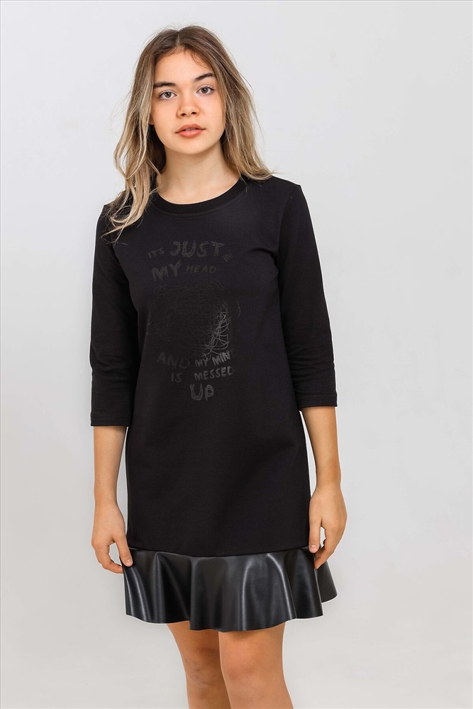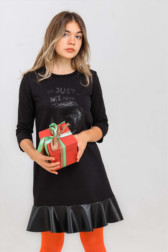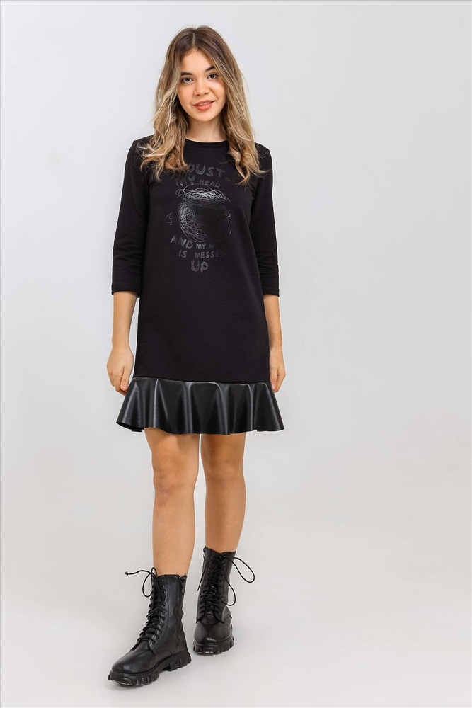 Страна производства: Россия Модное платье для девочки с кожаным воланом по низу. Удобный рукав платья длиной 3/4. Модель выполнена из ткани, содержащей в составе 60% хлопка, поэтому ткань можно назвать дышащей, а полиэстер и лайкра в составе не дадут платью вытянуться и закататься. При правильном уходе за вещью она прослужит очень долго. Размерная линейка содержит большие размеры на рост 164, поэтому платье может подойти даже женщинам обладающим таким ростом. Платье в классическом черном цвете станет идеальной одеждой для активных девушек. Модель без застёжек и легко надевается через голову. Изделие без капюшона и воротника прямого свободного кроя не сковывает движений во время носки и может претендовать на модель повседневного назначения в любой сезон: зима, весна, лето, осень. Детское платье декорировано принтом черного цвета, он практически не заметен, но придаёт благородный блеск платью, а в паре с воланом получается нарядный образ, который можно использовать для любого праздника, например, новый год, день рождения, 8 марта, выпускной, дискотеку. Будем рады покупкам на нашей страничке.