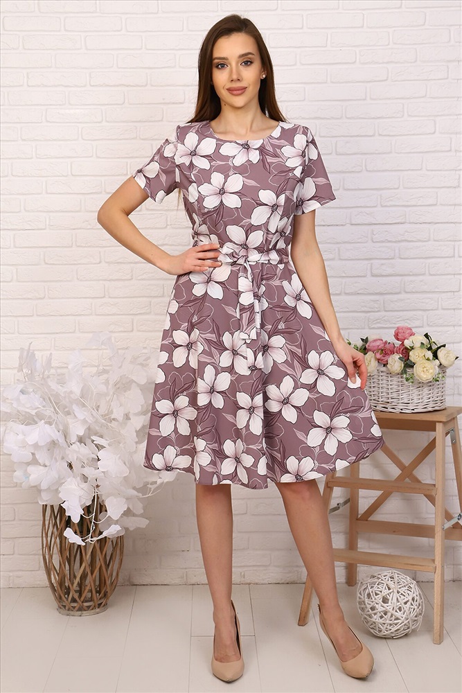 ID товара: 305696 Состав: Полиэстер 80%, Вискоза 15%, Спандекс 5% Сезон: Весна/Лето Длина: До колена Фасон: Расклешенный Рукав: Короткий Вид застежки: Молния Вырез горловины: Круглый Рисунок: цветочный Тип карманов: Без карманов Декоративные элементы: Пояс Основная ткань: Полиэстер | Ниагара, Ниагара — это тонкая струящаяся ткань на основе вискозы и полиэстера. Не просвечивает, не блестит, очень приятная на ощупь, гладкая, немного тянется. Отлично подходит для пошива платьев, сарафанов, блузок. Бывает однотонной и набивной. Особенности- не сминается, хорошо «дышит», легка в уходе. Стиль: Романтический Страна бренда: Россия Страна производства: Россия Платье приталенного силуэта с широкой юбкой, отрезное по талии с тканевым поясом, эффектно подчеркивает линию талии. Круглый вырез горловины. Втачные укороченные рукава, на спине застежка на молнию. Идеальный выбор для стильного гардероба. Прекрасно подойдет для работы в офисе и для романтической встречи. Комментарии к товару