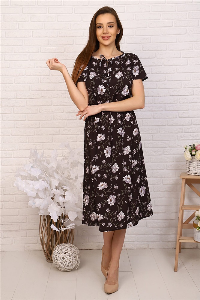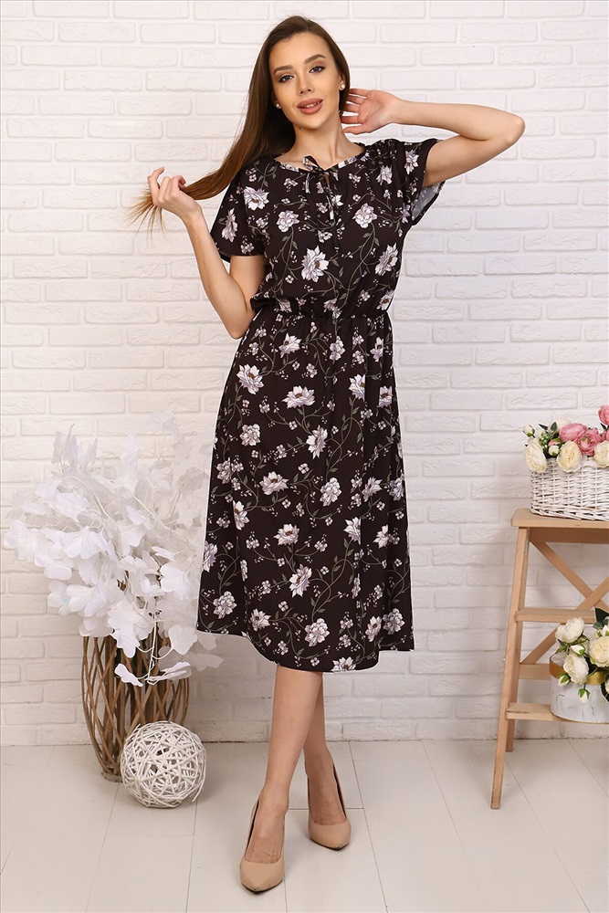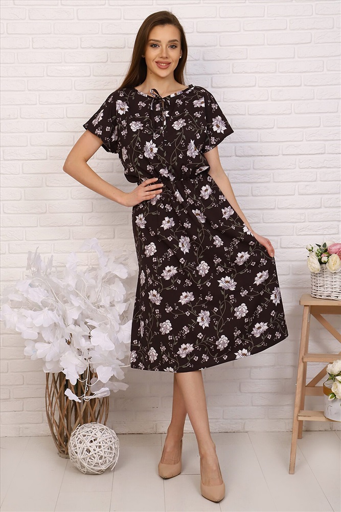 ID товара: 717908 Состав: 80% Полиэстер, 15% Вискоза, 5% Спандекс Сезон: Весна/Лето Длина: Ниже колена Фасон: Приталенное Рукав: Короткие Вид застежки: Без застежки Вырез горловины: Округлый Рисунок: цветочный Декоративные элементы: Завязки Основная ткань: Полиэстер | Ниагара Стиль: Повседневный Страна бренда: Россия Страна производства: Россия Летнее лёгкое платье из тонкой ткани с цветочным принтом. Модель длиной чуть ниже колена, отрезная по линии талии, с напускным верхом и коротким цельнокроеным рукавом. В поясе мягкая резинка. На округлой горловине небольшой вертикальный разрез на завязках. Удобное платье на каждый день. Комментарии к товару