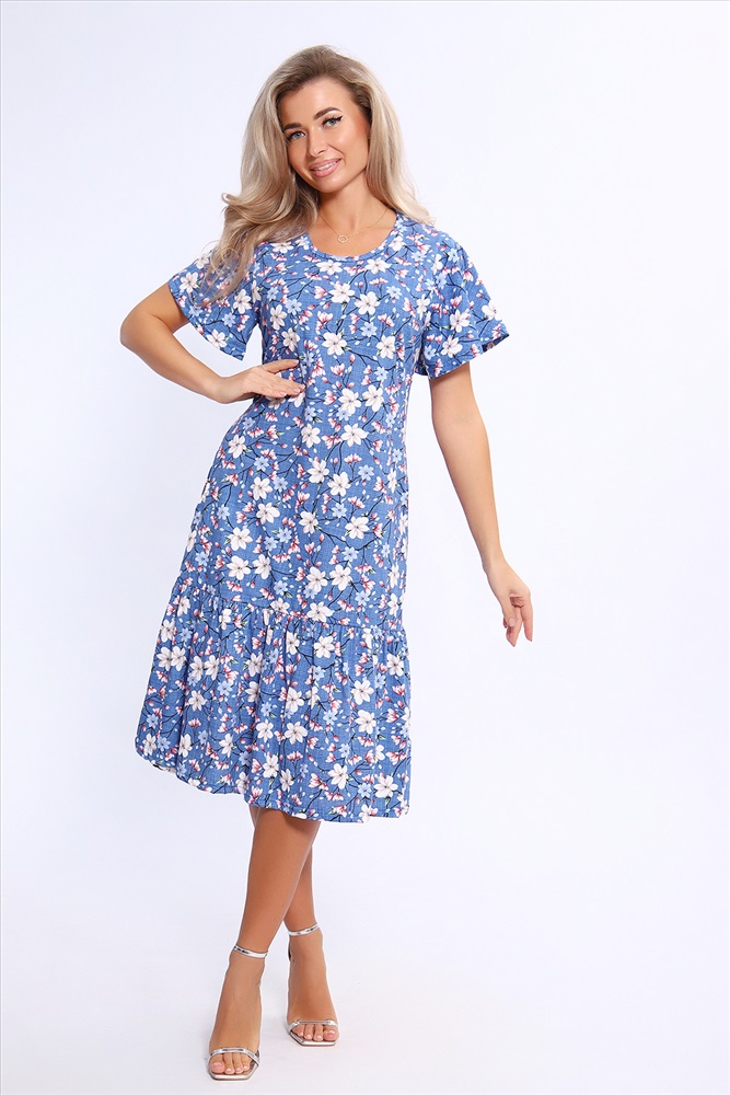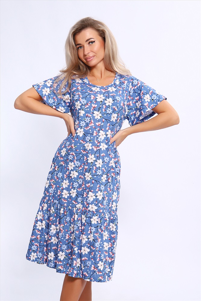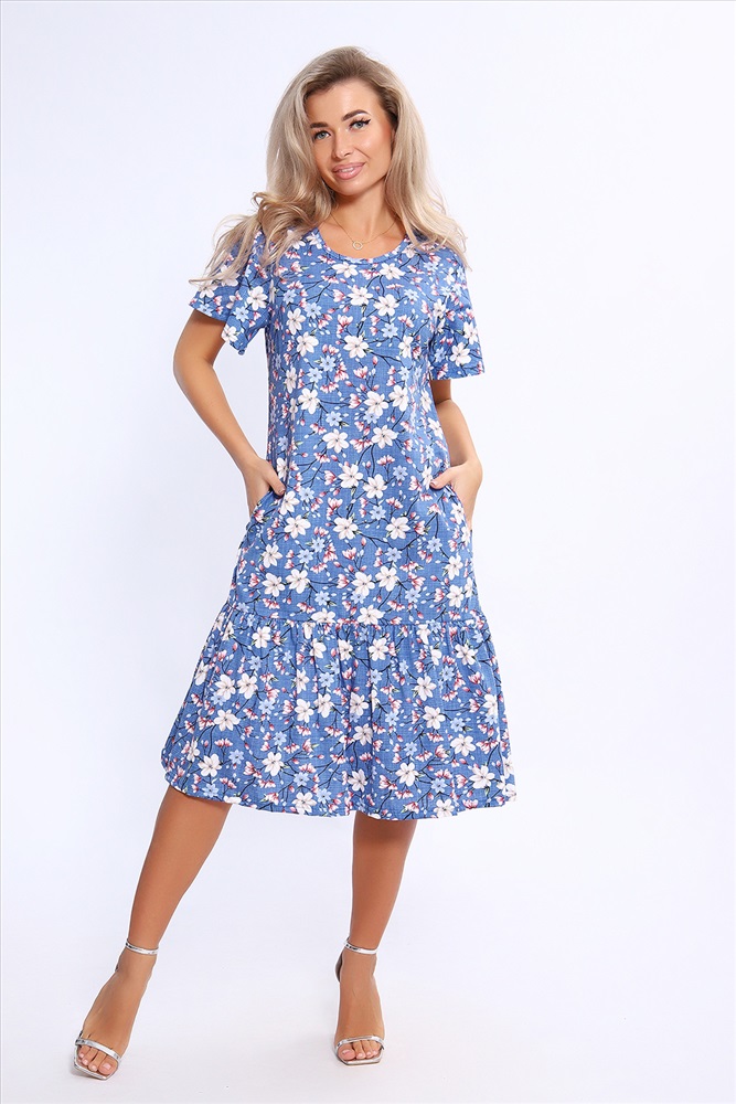 Состав: 100% хлопок Модель: Платье 21010 Тип товара: платье Материал: кулирка | кулирка Бренд: Натали Суслова Карман: боковые Отделка: с карманами | с воланами Рисунок: цветы Рукав: короткий рукав Сезонность: лето | весна Силуэт: расклешенный | свободный Скидка: любая Стиль: повседневный Воротник: без воротника Застежка: без застежки Платье свободного кроя с короткими рукавами - крылышками. По низу изделия широкий волан на сборке. Карманы в боковых швах. Таблица размеров и веса