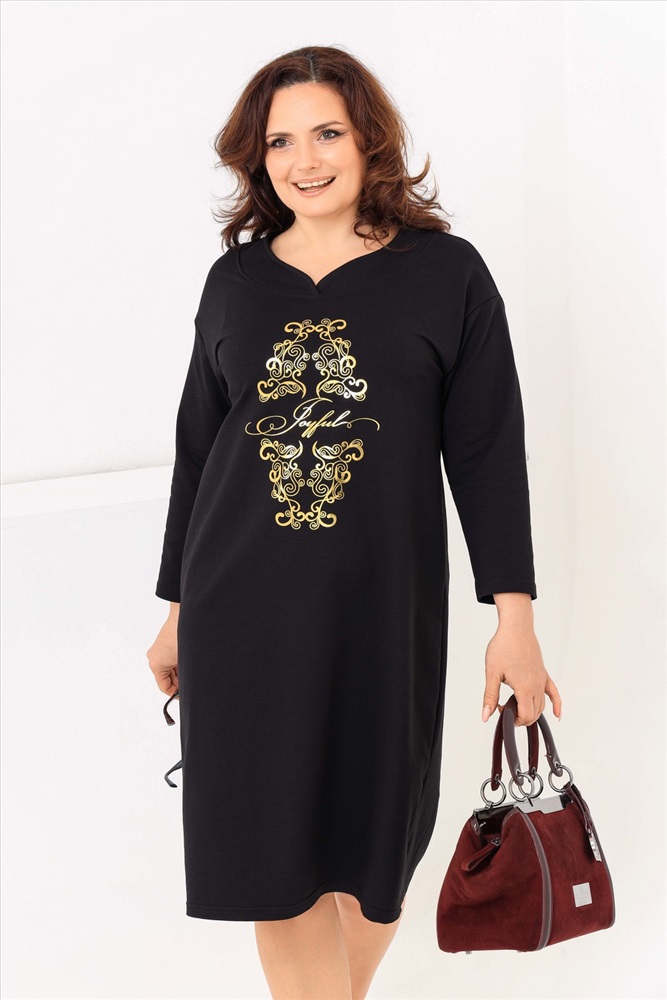 Состав: Хлопок 70%, п/э 24%, лайкра 6% Модель: Платье 21573 Тип товара: платье Материал: футер с лайкрой 2-х нитка | футер с лайкрой 2-х нитка Бренд: Натали Суслова Карман: без карманов Отделка: с печатью Рисунок: узоры Рукав: рукав 7/8 Сезонность: лето | осень | весна | зима Силуэт: полуприлегающий Стиль: повседневный Воротник: без воротника Застежка: без застежки Элегантное, женственное платье отлично дополнит гардероб любой девушки, женщины. Эффектно подчёркивает фигуру. Узор в виде орнамента из золотой фольги. Линия плеча немного спущена, лёгкая приталенность. Интересная горловина в виде лёгкой волны. Все обтачки проклеены флизелином. Рекомендации к стирке: вывернуть изделие, деликатная стирка при 30 градусах. Это платье на любой случай. Сидит отлично ! Модно. Качественно. Для тебя. Таблица размеров и веса