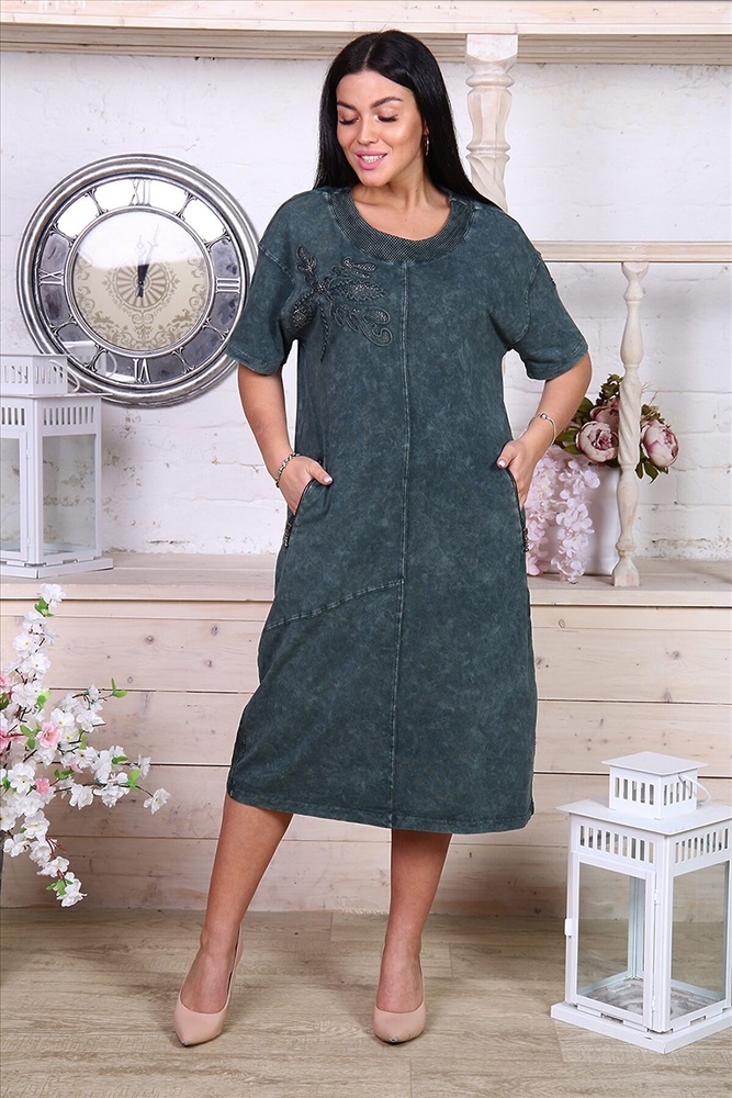 ID товара: 348417 Состав: Хлопок 95%, Лайкра 5% Сезон: Весна/Лето Длина: Ниже колена Фасон: Прямой Рукав: До локтя Вид застежки: Нет Вырез горловины: Круглый Рисунок: нет Тип карманов: Прорезные Основная ткань: Хлопок | Кулирка с лайкрой Стиль: Повседневный Страна бренда: Россия Страна производства: Россия Платье женское свободного силуэта, украшено вышивкой с аппликацией. Качественная турецкая ткань. Комментарии к товару