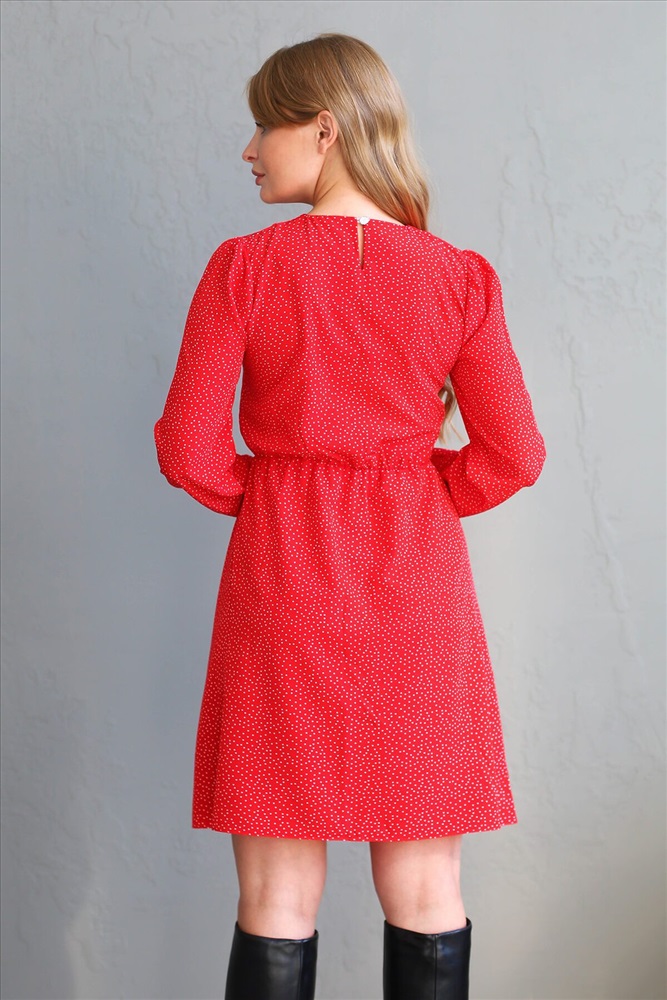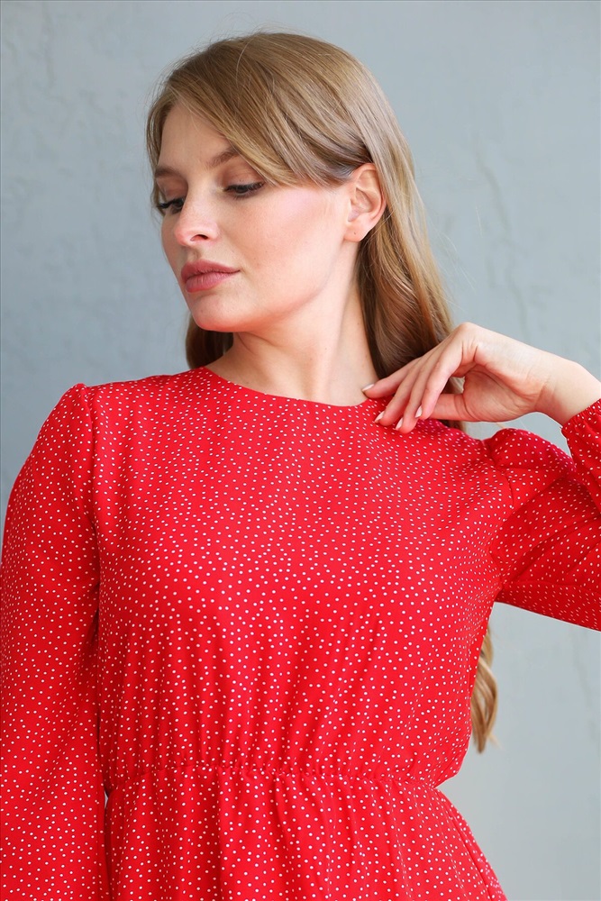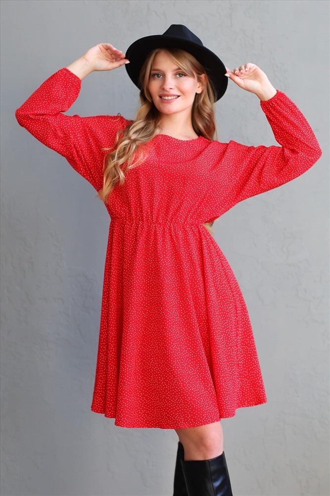 Страна производства: Россия Стильное лпатье в горох со спущенным плечом - выбор стильных девушек на осень. Легкое, из качественной ткани оно отлично сочетается с высокими сапогами и кедами, косухой и пальто. Пояс на резинке подойдет беременным. Рукав длинный и легкий. Длина мини.