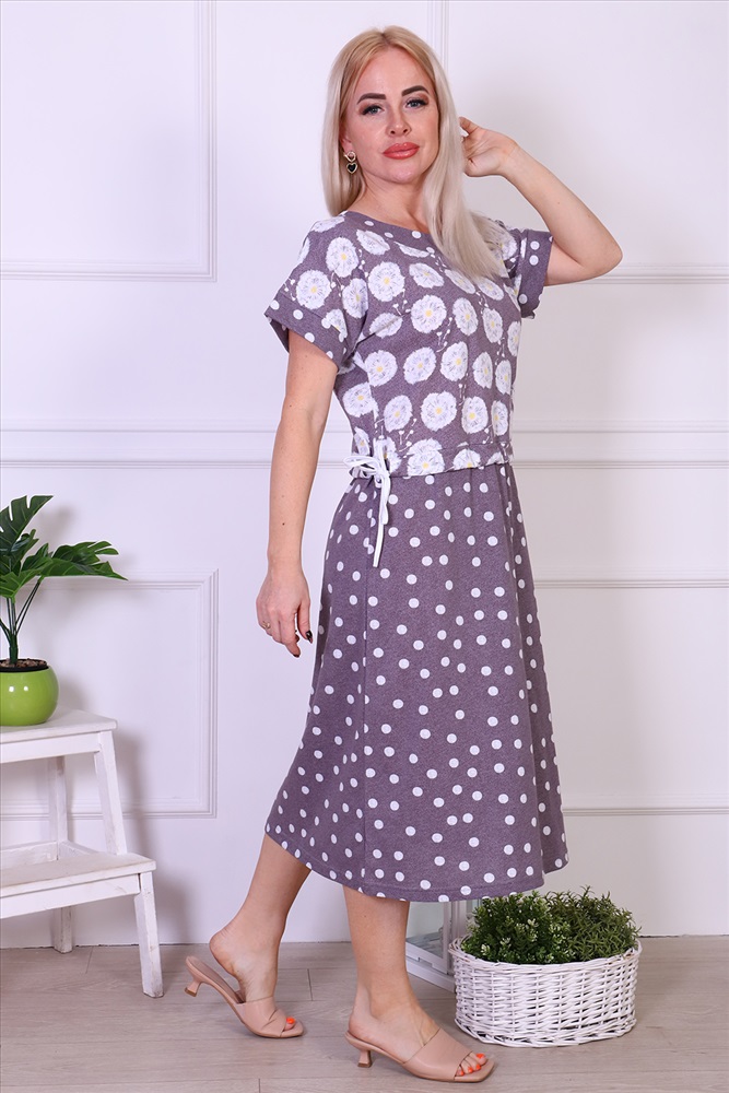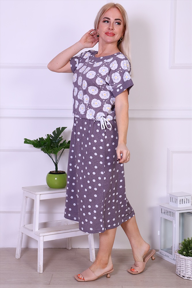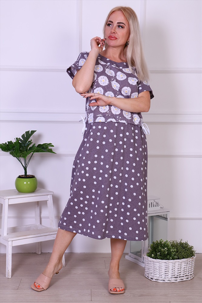 Состав: хлопок 100% Модель: Платье 24250 Тип товара: платье Материал: кулирка | кулирка Бренд: Натали Суслова Длина: средняя длина Карман: без карманов НДС: 5% Отделка: с поясом | со шнурком Рейтинг: Рейтинг 4 и выше Рисунок: горошек | цветы Рукав: короткий рукав Сезонность: лето Силуэт: приталенный Стиль: повседневный Воротник: без воротника Застежка: без застежки Летнее женское платье свободного прилегания, комфортно и удобно при носке. Прекрасно смотрится на любой фигуре, скрывает недостатки. Платье со спущенной проймой, по линии талии кулиска со шнурком для удобной фиксации на талии. Таблица размеров и веса
