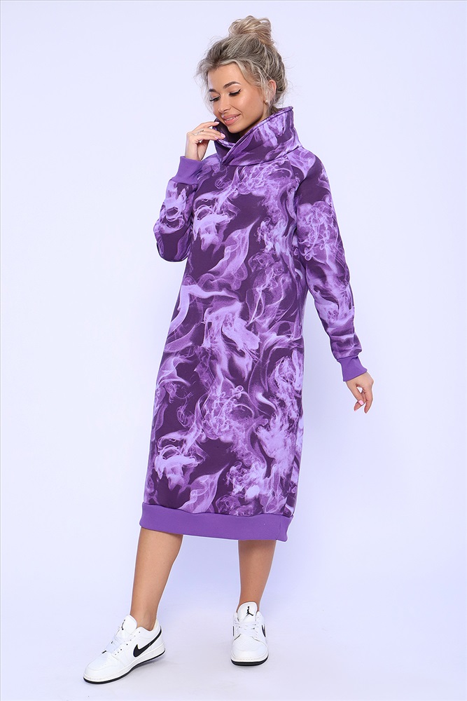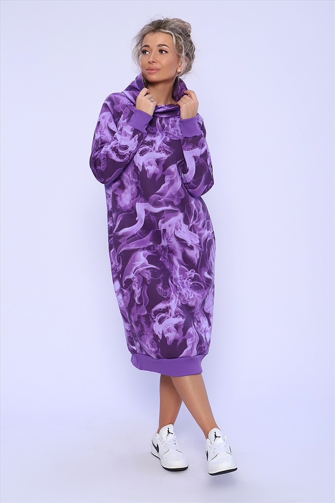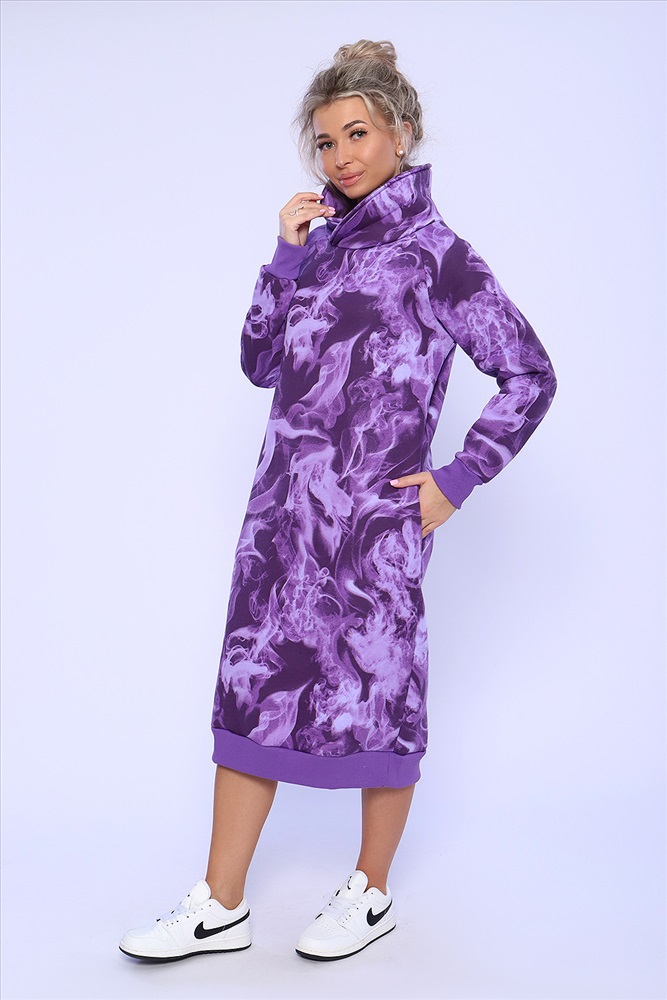 Застежка: без застежки Теплое женское платье в спортивном стиле выполнено из футера пенье с начесом, прекрасный вариант для вечерних прогулок. Спортивное платье с начесом идеально на холодное время года. Крой платья женского обеспечит идеальную посадку по фигуре, платье по рукавам и низу изделия отделано эластичными манжетами. В боковых швах трикотажного женского платья глубокие карманы. Повседневное платье в стиле спорт шик - это красивая комфортная и теплая женская одежда на каждый день.
