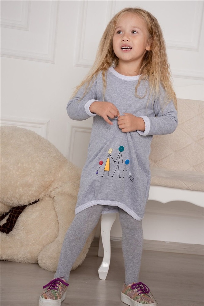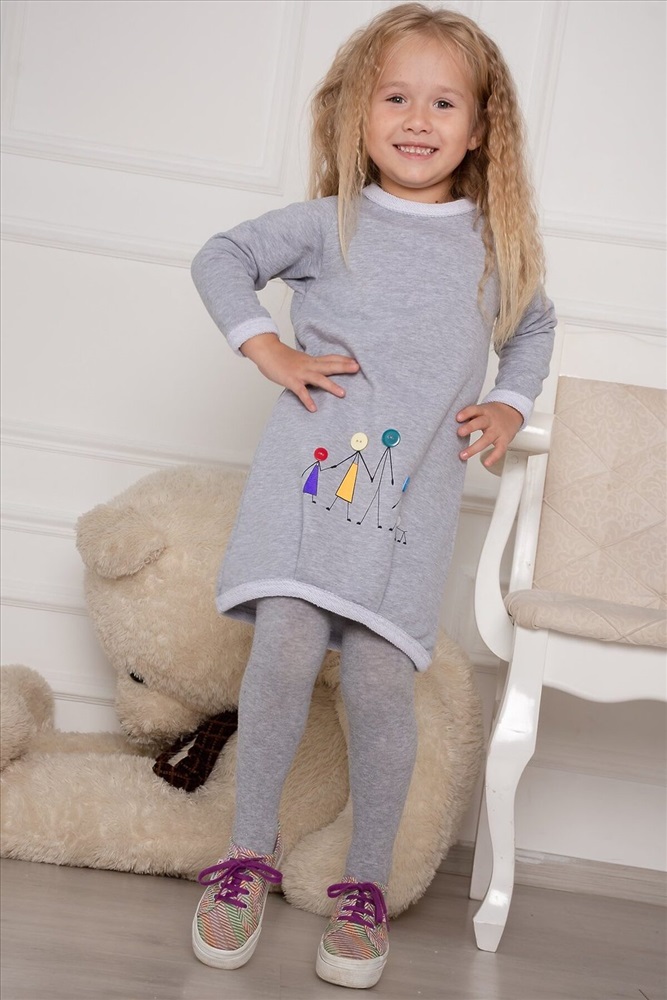 ID товара: 280438 Состав: Хлопок 65%, Полиэстер 35%. Сезон: Весна/Лето Длина: длина до колен Фасон: Свободный крой Рукав: Длинный Вырез горловины: Круглый Рисунок: Фантазийный Основная ткань: Хлопок | Футер 3-х нитка петля, трикотажное полотно с переплетением - кулирная гладь на лицевой стороне и петлеобразная с изнанки Стиль: Нарядный Страна бренда: Россия Страна производства: Россия Современная модель детского платья с принтом в виде дружной семьи, декорировано разноцветными пуговицами. Платье с округлой горловиной, длинный рукав-реглан с манжетом, со встречными складками по низу переда и спинки. Горловина и низ обработаны широкой обтачкой. Платье теплое, приятное к телу, отличный вариант как повседневный , так и праздничный для маленьких модниц в любое время года. Комментарии к товару