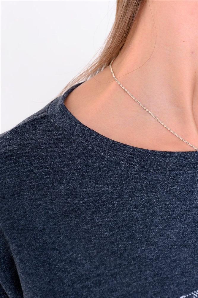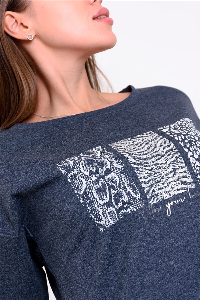 Платье женское полуприлегающего силуэта. Выполнено из футера двухнитки в двух цветах. Рукав спущенный с манжетом. Вырез горловины округлый, низ изделия обработан обтачкой. Удобное и практичное платье с современным принтом подойдет на любой случай.