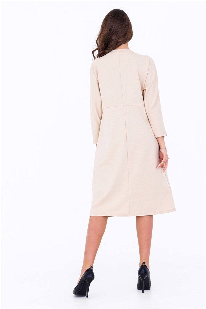 ID товара: 768146 Состав: Хлопок 47%, полиэстер 47%, лайкра 6% Сезон: Весна/Лето Длина: прикрывает колено Фасон: Расклешенный Рукав: 7/8 Вырез горловины: Округлый Рисунок: Без рисунка Основная ткань: Хлопок | Футер 2-х нитка Стиль: Нарядный Страна бренда: Россия Страна производства: Россия Платье женское выполнено из футера двухнитки в двух цветах. Изделие с кокеткой спереди и сзади. Горловина округлая, перед и спинка модели разрезны. Приталенное, слегка расклешенное к низу. Стильное и удобное платье миди подойдет на любое мероприятие. Комментарии к товару