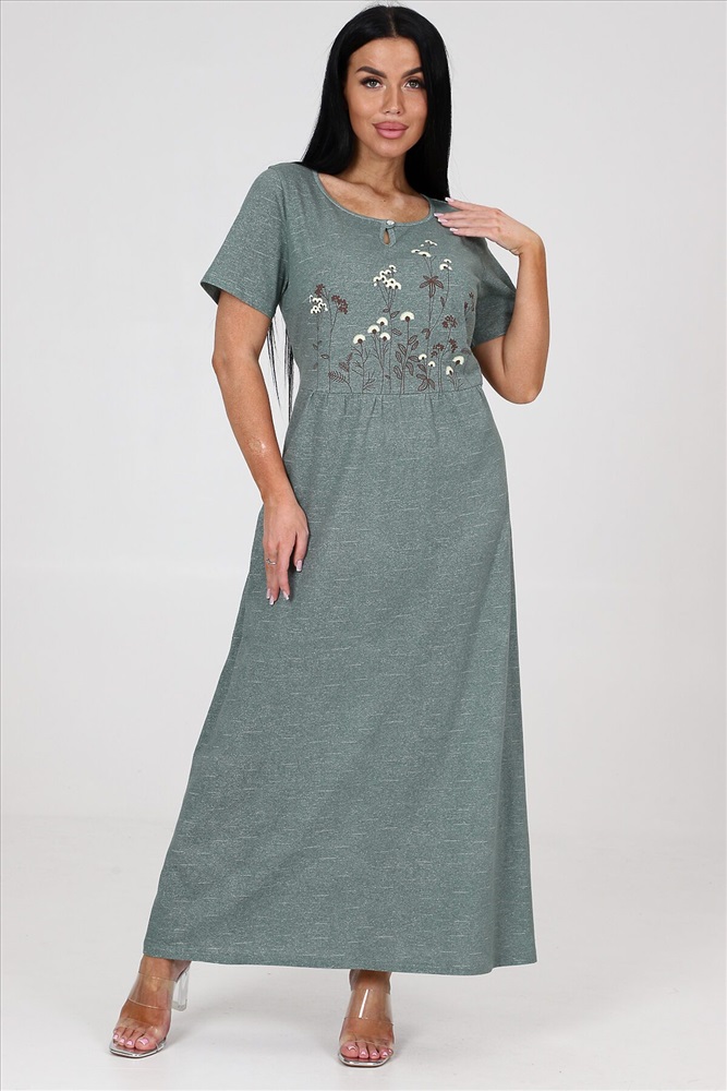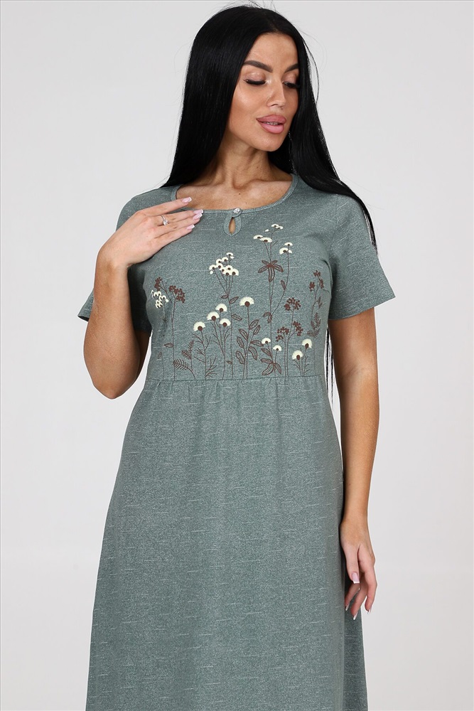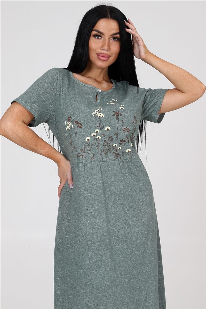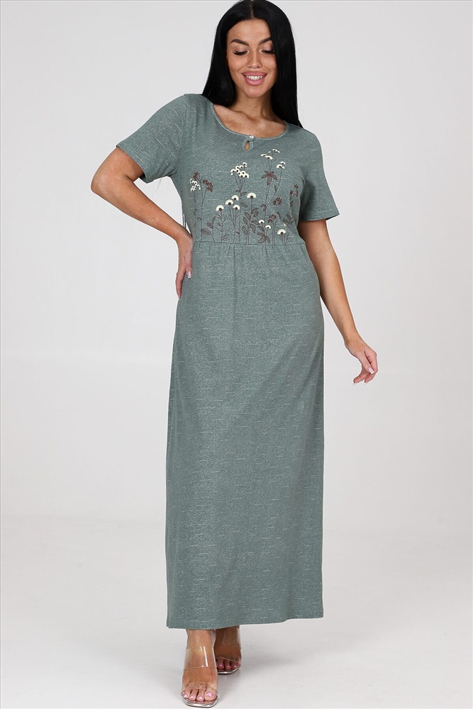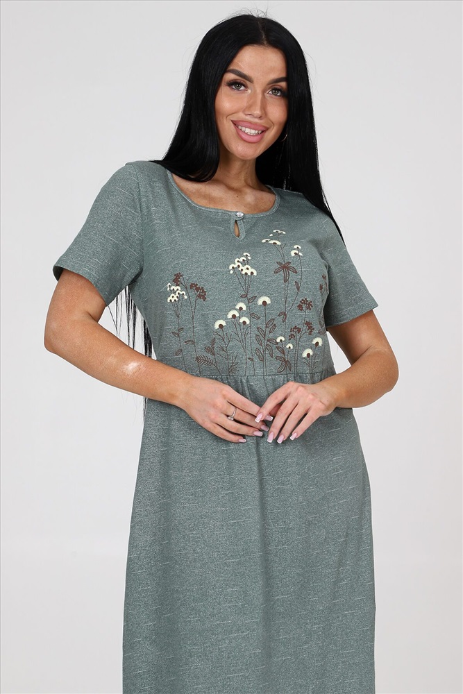 ID товара: 982886 Состав: Хлопок 100% Сезон: Весна/Лето Длина: Макси Фасон: Полуприлегающий Рукав: короткие Вид застежки: Пуговица Вырез горловины: Круглый Рисунок: Цветы Вид ткани: Кулирка Страна бренда: Россия Страна производства: Россия Платье женское из кулирки. На полочке и спинки кокетка. На кокетке расположена печать. Рукав втачной. На полочке и спинки в области талии небольшая сборка. Комментарии к товару