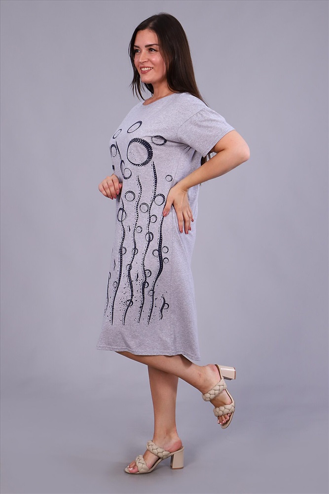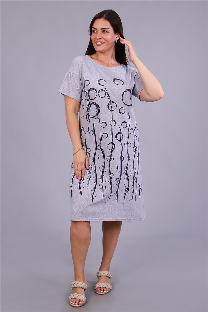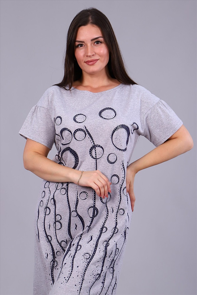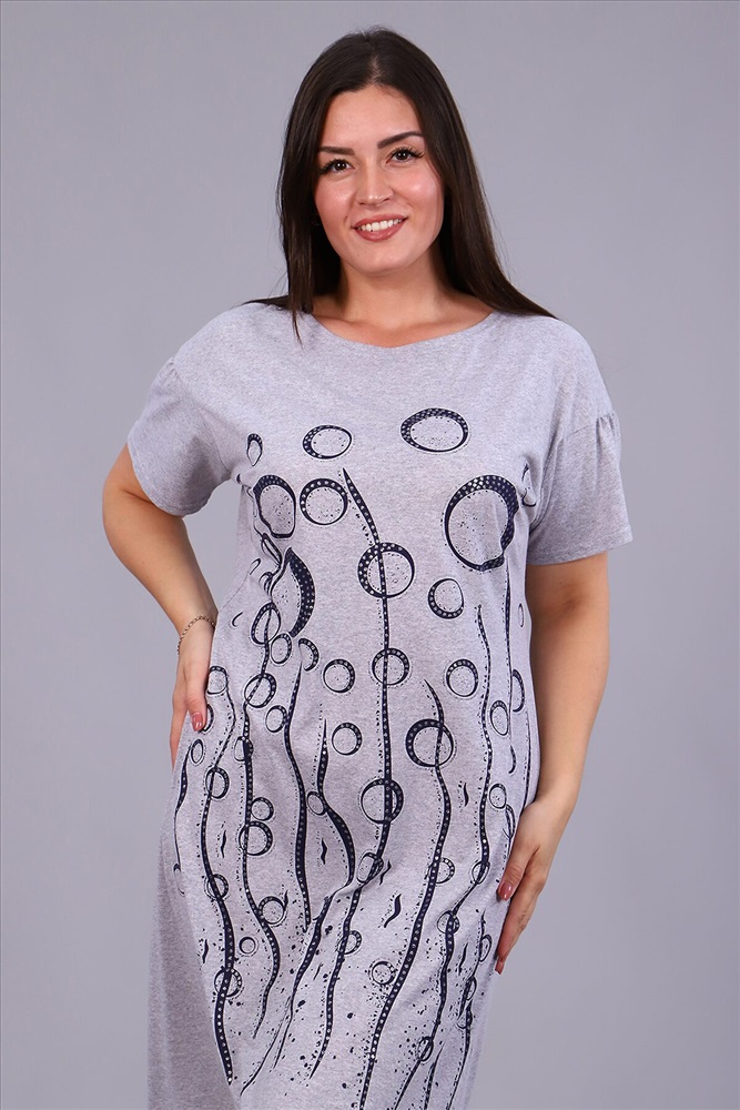 ID товара: 798247 Состав: 75% Хлопок, 25% Полиэстер Сезон: Весна/Лето Длина: Ниже колена Фасон: Прямое Рукав: Короткие Вырез горловины: Округлый Рисунок: Фантазийный Декоративные элементы: Печатный принт Основная ткань: Хлопок | Кулирка Стиль: Повседневный Страна бренда: Россия Страна производства: Россия Платье женское с принтом из приятного к телу трикотажа. Модель полуприлегающего силуэта, круглая горловина, спущенное плечо, фигурная пройма, короткий слегка присборенный свободный рукав. Уютное, мягкое платьице необходимая вещь в гардеробе любой женщины, подойдёт для дома, отдыха и приятных прогулок. Комментарии к товару