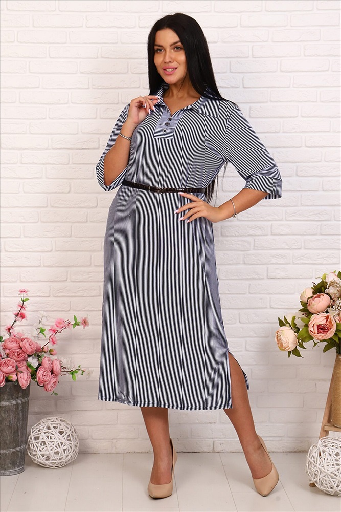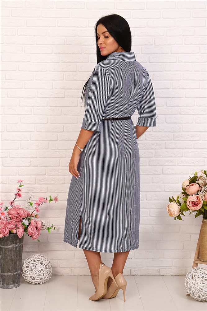 Страна производства: Россия Платье рубашечного покроя, отложной воротник. Рукав 3/4 на манжете. В боковых швах изделия разрезы