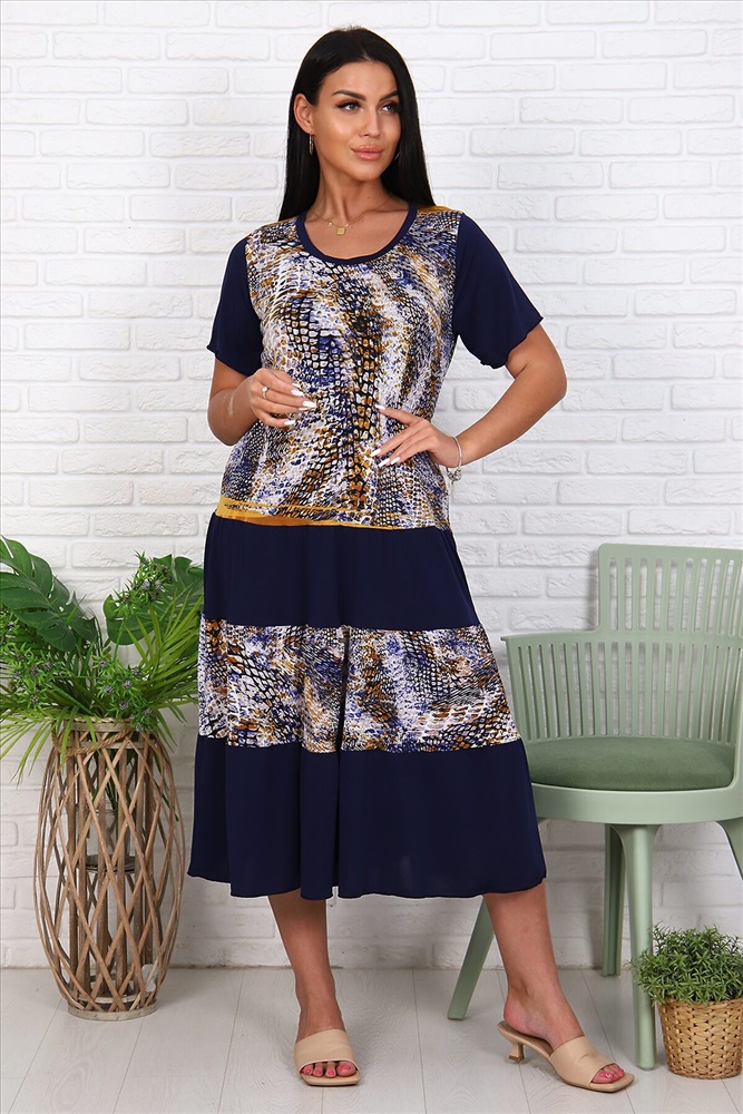 Страна производства: Россия Повседневное платье с оборками, коротенький рукав, округлый вырез - отделан кантиком. Длина ниже колен.