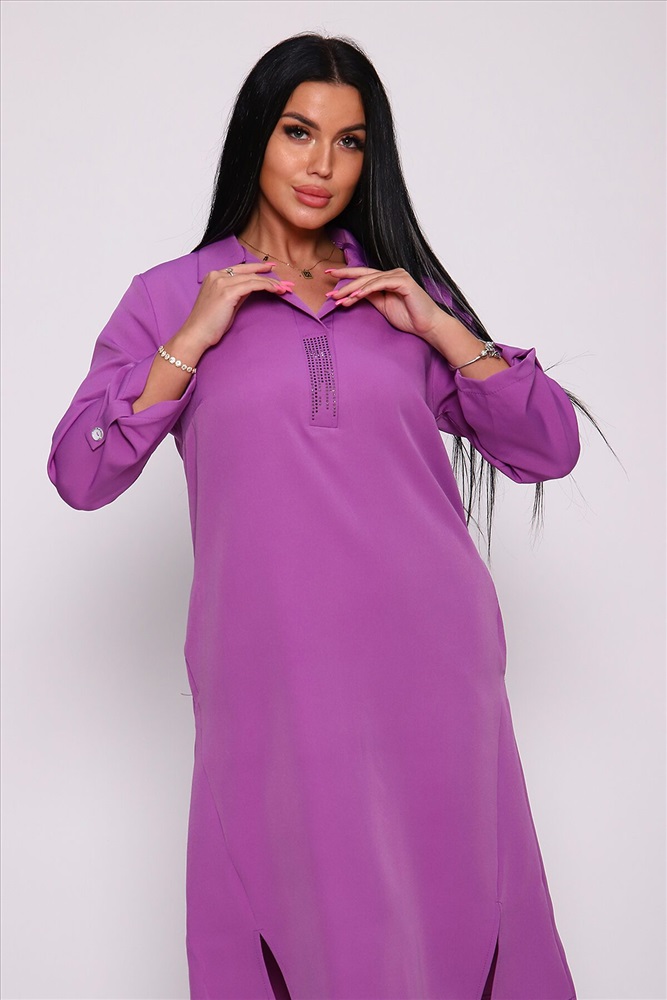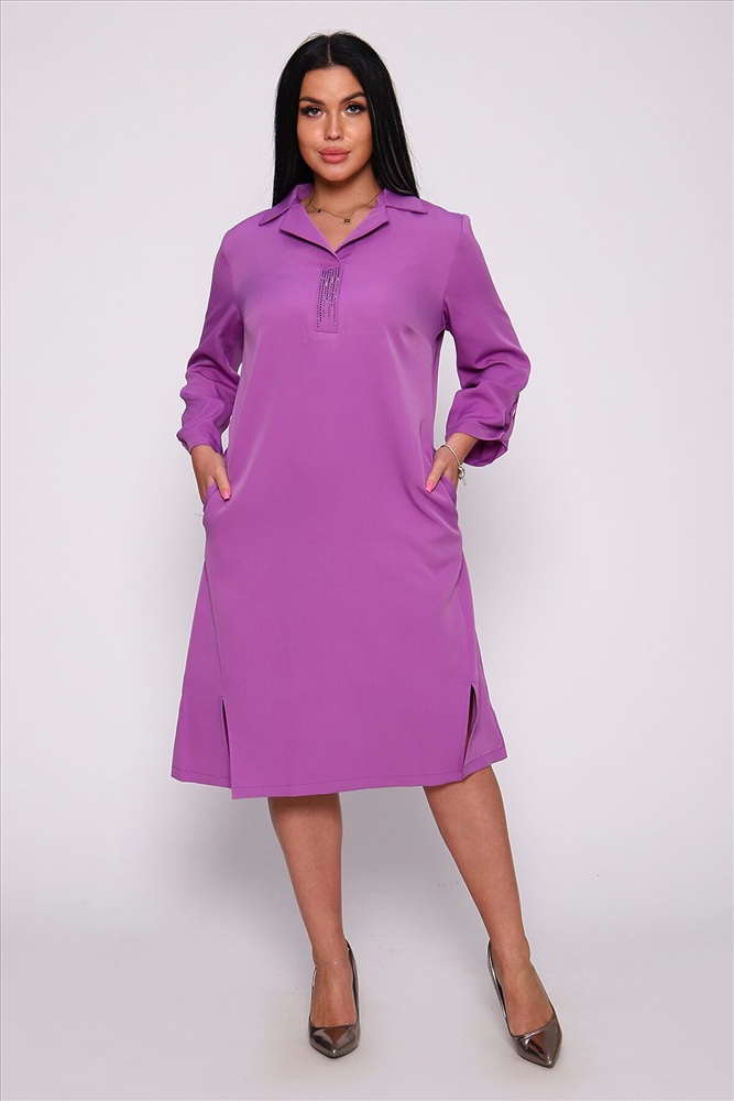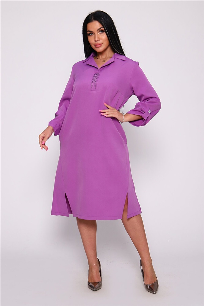 Даже если женщина предпочитает спортивный стиль, в ее гардеробе найдется хотя бы одно платье для особых мероприятий. Ну а большинство модниц считают, что чем больше платьев, тем лучше. Платье прямого кроя с отложным воротником. Планка отделана стразами, а разрезы на полочке придадут шарма его обладательнице.