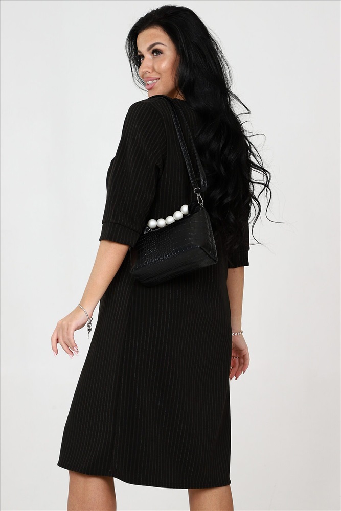 Эффектный выбор для стильных женщин: классическое черное платье с изысканными деталями. Это настоящий маст-хэв в гардеробе каждой модницы. Полочка изделия оформлена отрезными бочками, которые вместе с листочками придают имитацию карманов незаменимая изюминка, подчеркивающая вашу индивидуальность. Уникальность этого платья подчеркнута рукавами три четверти на манжете, что придает изделию сдержанную элегантность. Воротник в стиле стойка - мандарин придает образу нотку экзотического шарма и неповторимости. Восхитительное черное платье идеально сочетается с любыми аксессуарами и обувью, что позволяет вам создать разнообразные образы для разных поводов. Будь то деловая встреча или вечерний выход в свет, вы всегда будете выглядеть безупречно и притягательно.