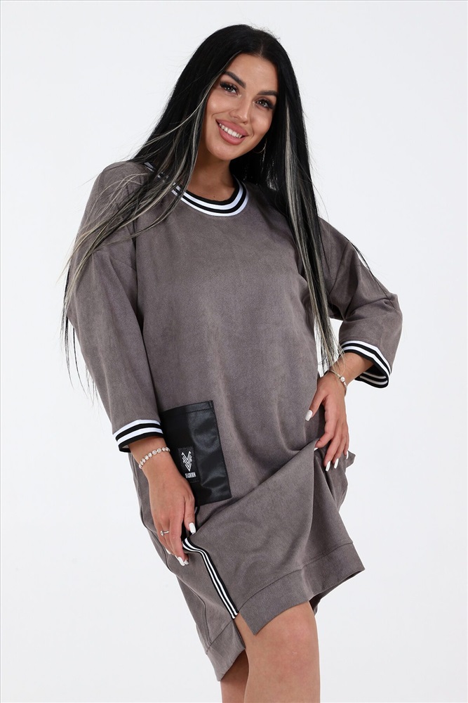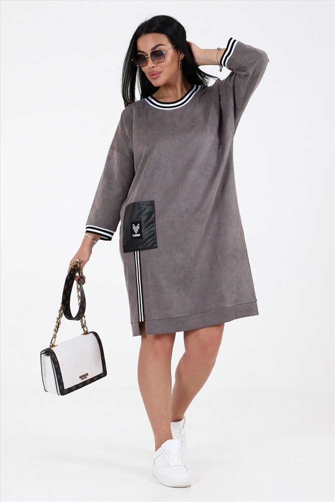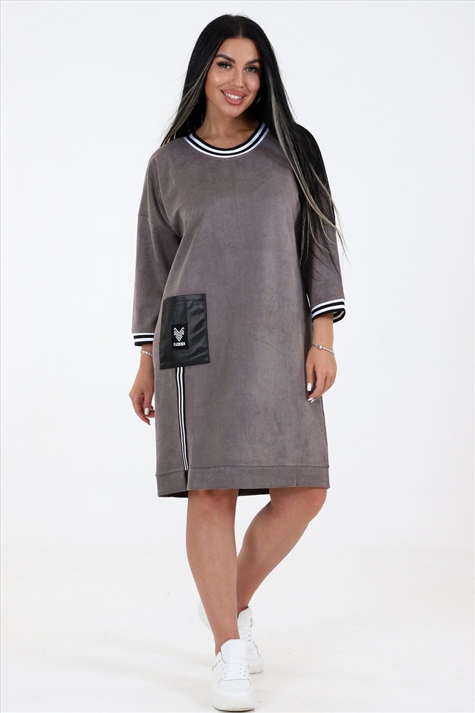 ID товара: 1034467 Состав: 100% Полиэстер Сезон: Весна/Лето Длина: прикрывает колено Фасон: Свободный Рукав: 3/4 Вырез горловины: Округлый Тип карманов: накладной Основная ткань: Полиэстер Стиль: повседневный Вид ткани: Микровельвет Страна бренда: Россия Страна производства: Россия Модное женское платье идеально подойдет для повседневного использования. Изготовлено из качественных материалов, оно приятно к телу и не теряет своей формы со временем. Платье имеет интересный дизайн с горловиной и спущенными рукавами, что добавляет немного игры в образ. Полочка платья декорирована элегантной декоративной лентой, придавая ему особую изысканность. На платье также присутствует карман с оригинальной нашивкой из эко-кожи, что придает ему стильный акцент. Этот карман является не только декоративным элементом, но и практичным решением для хранения мелочей. По нижней части изделия вшита планка с маленьким разрезом, что придает платью еще больше изысканности и необычности. Это платье является универсальным и прекрасно дополнит гардероб женщины любого возраста. Оно идеально подходит как для повседневных выходов, так и для особых случаев. Комментарии к товару