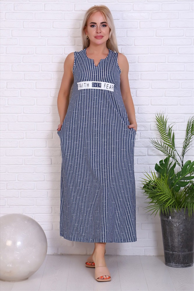 ID товара: 766827 Состав: 100% хлопок Сезон: Весна/Лето Длина: Миди Фасон: Расклешенный Рукав: Без рукавов Вид застежки: Без застежки Вырез горловины: V-образный Рисунок: Полоска Тип карманов: косой Декоративные элементы: Принт Основная ткань: 100% хлопок | Кулирка Стиль: Повседневный Страна бренда: Россия Страна производства: Россия Платье женское с V-образным вырезом горловины, свободного кроя без рукавов с боковыми карманами. На груди выполнена печать. Платье гармонично смотрится как с легкими туфлями, так и удобными кроссовками. Ткань из хлопка будет создавать комфорт даже в жаркую летнюю погоду. Отлично подобранная цветовая гамма спокойных тонов освежит образ. Летнее женское платье на каждый день удобно использовать для прогулок, ланча и вечерних встреч. Комментарии к товару