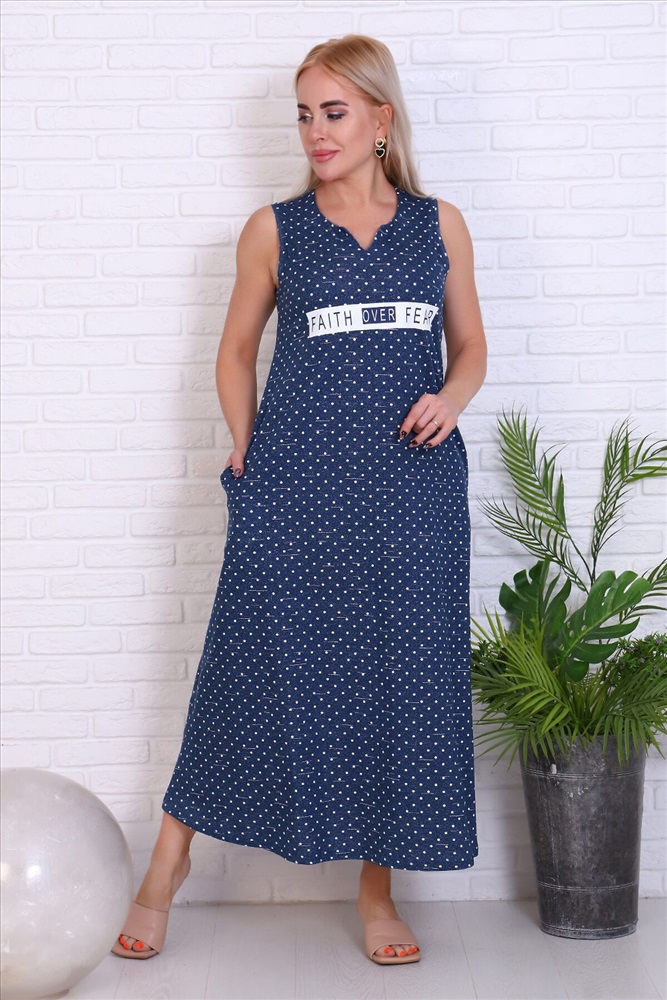Производитель: НАТАЛИ ID товара: 768912 Состав: 100% хлопок Сезон: Весна/Лето Длина: Миди Фасон: Свободный крой Рукав: Без рукавов Вид застежки: Без застежки Вырез горловины: V-образный Рисунок: Горох Декоративные элементы: Принт Основная ткань: 100% хлопок | Кулирка Стиль: Повседневный Страна бренда: Россия Страна производства: Россия