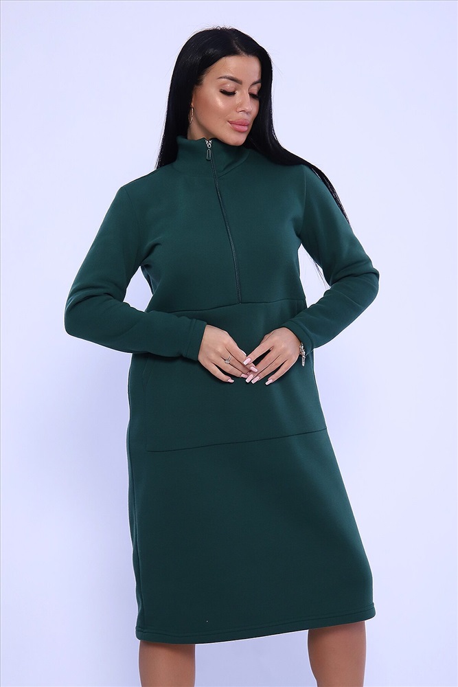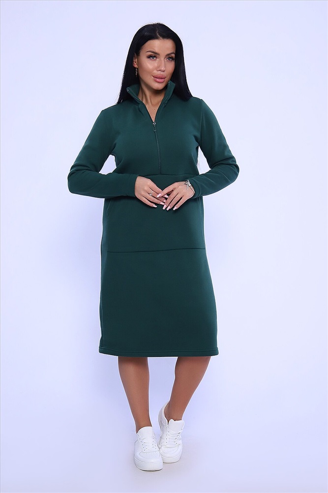 ID товара: 946801 Состав: 100% Полиэстер Сезон: Демисезон Фасон: Свободный крой Рукав: длинные Вид застежки: Молния Вырез горловины: Воротник-стойка Стиль: Повседневный Вид ткани: Футер 3-х нитка с начесом Страна бренда: Россия Страна производства: Россия Стильное платье. Прямой крой, воротник стойка, молния, длинный рукав. Комментарии к товару