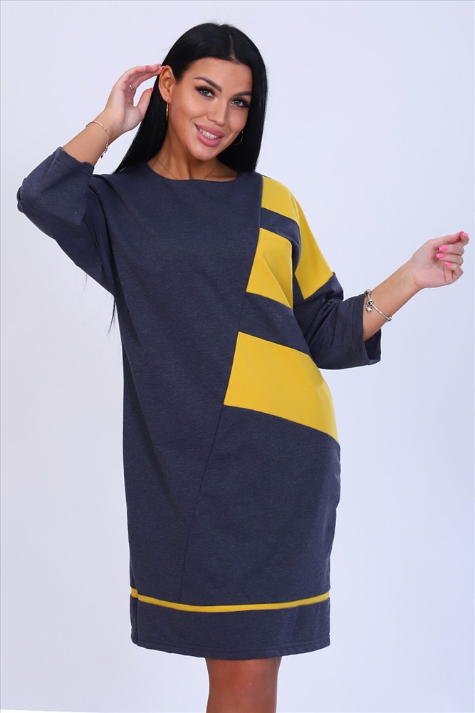 ID товара: 826266 Состав: 72% Хлопок, 20% Полиэстер, 8% Лайкра Сезон: Осень/Зима Длина: До колена Фасон: Прямое Рукав: 3/4 Вырез горловины: Округлый Основная ткань: Хлопок | Футер 2-х нитка Стиль: Повседневный Страна бренда: Россия Страна производства: Россия Женское платье прямого силуэта со вставками из контрастной ткани. Ткань - мягкий тонкий футер 2-х нитка с лайкрой. Рукав 7/8, со спущенной линией плеча. Длина чуть ниже колена. Комментарии к товару