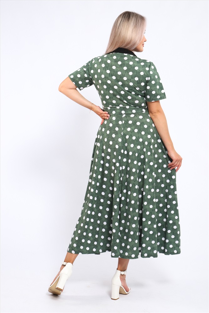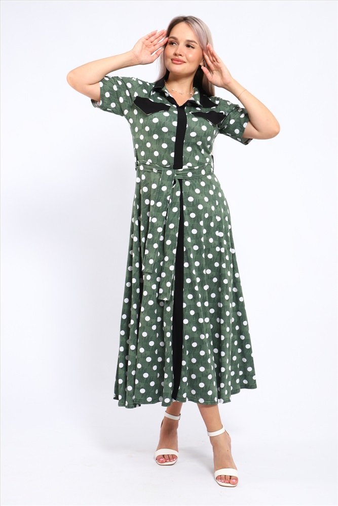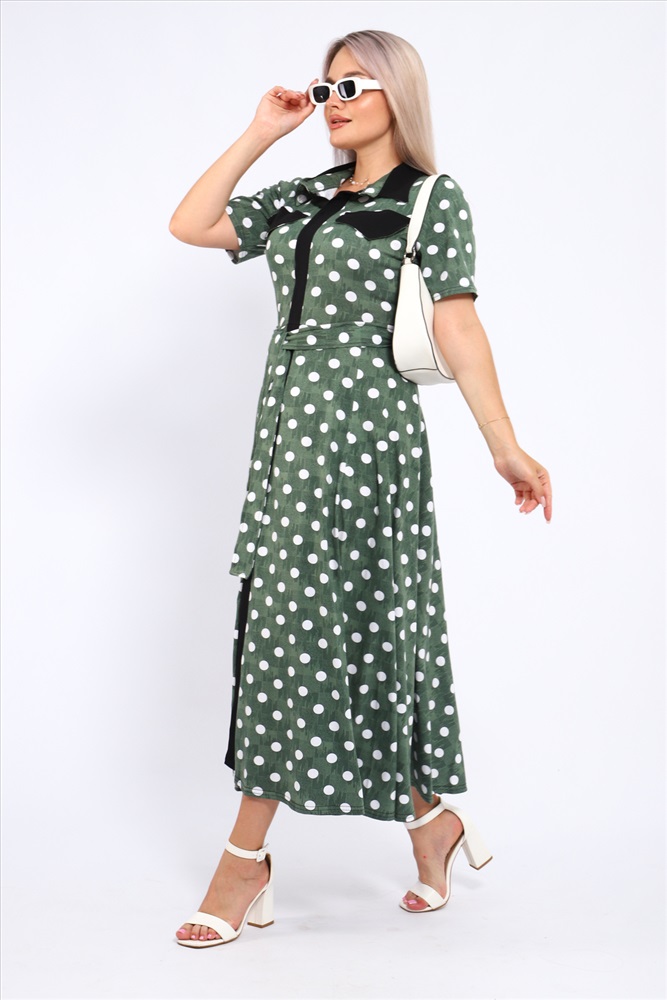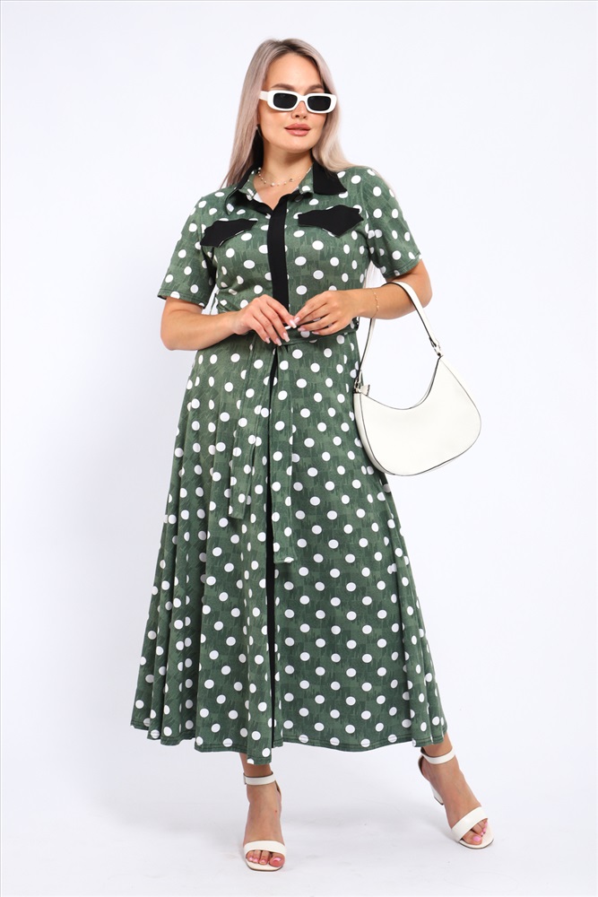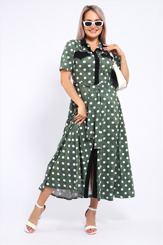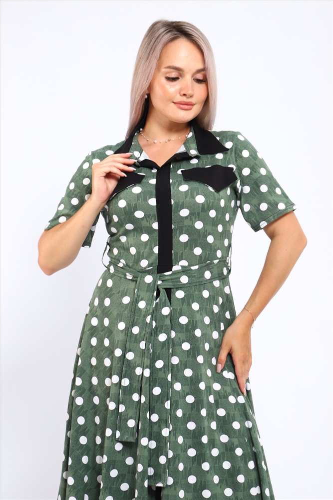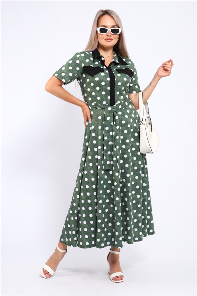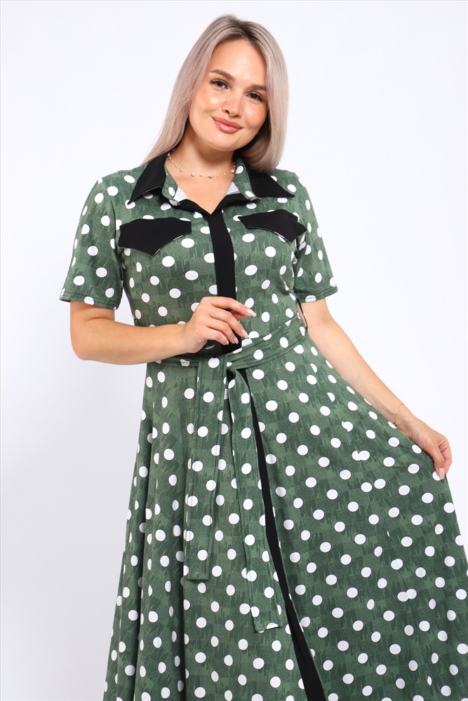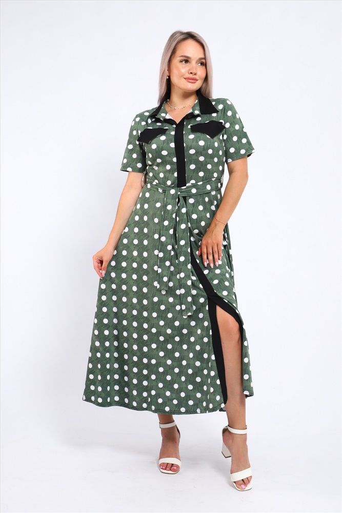 Застежка: без застежки Платье, которое сочетает в себе комфорт и уникальный дизайн. Модель выполнена из мягкого материала, что делает её идеальной для повседневной носки. Свободный крой с расклешённой юбкой и акцент на талии с помощью пояса создают воздушный и женственный силуэт. Контрастное сочетание жёлтого и чёрного в гороховом принте смелое и при этом очень гармоничное решение. Это платье отличный выбор для прогулок, встреч с друзьями или офиса. Носите его с босоножками на каблуке для создания изысканного образа или с кедами для более расслабленного стиля.