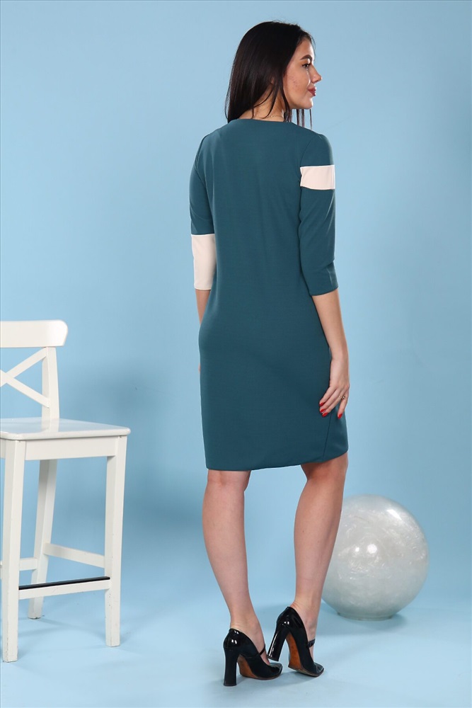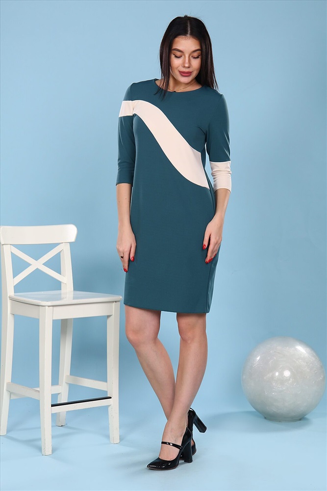 Страна производства: Россия Платье прилегающего силуэта. Рукав 3/4. Вырез горловины круглый. Отделка - контрастная вставка.