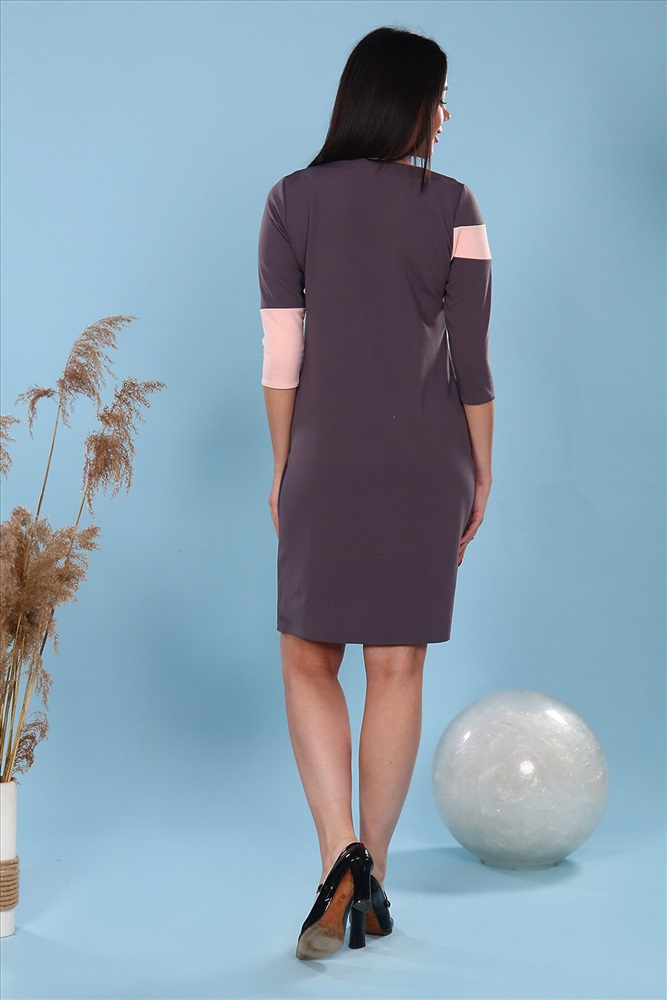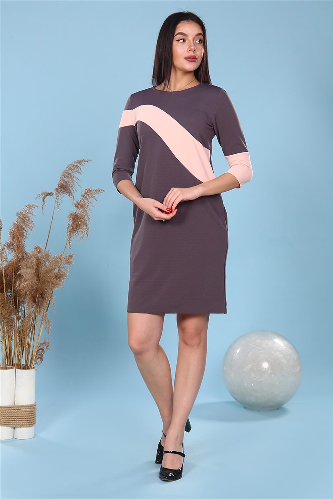 Страна производства: Россия Платье прилегающего силуэта. Рукав 3/4. Вырез горловины круглый. Отделка - контрастная вставка.